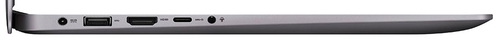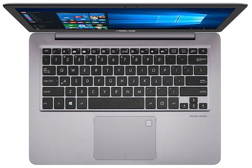 ДизайнНоутбук облачен в металлический корпус, одновременно легкий и крепкий. Серый цвет – классика, к тому же он практичный: отпечатки пальцев, пыль, даже мелкие царапины на сером не бросаются в глаза. Посередине крышки находится логотип бренда (объемными буквами), вокруг него – концентрические круги – особенность лэптопов линейки ZenBook. ![]() Экран окружают весьма заметные рамки, потолще, чем у большинства современных ультрабуков. На верхней грани расположена веб-камера, напротив нее – еще один лого компании ASUS, небольшого размера. Верх и низ конструкции лэптопа объединяет продолговатая шарнирная петля, в меру тугая. Одной рукой поднять крышку не получится, в то же время это и хорошо, ведь дисплей надежно фиксируется в заданном положении, не шатается вперед или назад. Клавиатура с крупными кнопками заметно утоплена в поверхность и не соприкасается с экраном, когда ноутбук в закрытом виде. Интерфейсы равномерно распределены по боковым граням. ![]() Размеры лэптопа составляют 323х223х19 мм, вес – 1.4 кг. Что ж, устройство действительно мобильное, хотя вес мог быть бы и скромнее. При желании девайс можно брать с собой в поездки, он не занимает много места и не отягчает своими габаритами. Качество сборки ASUS ZenBook U310UF отличное: конструкция не прогибается, не люфтит, не скрипит, детали подогнаны ровно и аккуратно. Дисплей, звук и веб-камераНоутбук наделен 13.3-дюймовым экраном с Full HD-разрешением и соотношением сторон 16:9. Максимальный уровень яркости составляет 300 кд/м2. Это высокий показатель, поэтому с дисплеем удобно работать не только в помещении, но и на улице, в солнечную погоду. Цветопередача естественная, картинка на экране получается сочная, глубокая, реалистичная. ![]() У дисплея матовая поверхность, поэтому блики не помешают работе. Благодаря матрице IPS содержимое экрана четкое, детализированное и остается максимально качественным, даже если смотреть на него сбоку (или под любым другим ракурсом). ![]() Два стереодинамика выдают довольно громкий звук, который не хрипит и не искажается на максимуме. Сбалансированным его не назвать, все же слышится нехватка басов. В остальном претензий нет – ноутбук способен заполнить звучанием комнату средних размеров. Также не возбраняется подключать внешнюю колонку или наушники для улучшения акустических данных устройства. Веб-камера HD подходит для видеообщения, ничего более от нее ждать не стоит. Транслируемое ею изображение зернистое, оттенки передаются недостоверно, поэтому делать фото при помощи вебки не советуем. Клавиатура и тачпадВ ноутбуке установлена островная клавиатура с крупными кнопками квадратной формы. Клавиши шероховатые на ощупь, с белой маркировкой. У них средний ход, хорошая обратная связь, ощутимая отдача, поэтому нажимать на кнопки удобно, а руки не устают и после целого рабочего дня. Клавиатурный блок подсвечивается, поэтому в темноте или при плохом освещении печатать по-прежнему комфортно. ![]() Часто нажимаемые кнопки традиционно большего размера, чем обычные, и тем более функциональные. Так, клавиша [Enter] – однорядная, обе [Shift] – крупные, вытянутые, как и [CapsLock], [Tab]. Стрелочный блок миниатюрный, но большинство пользователей вспоминают о нем лишь время от времени, поэтому малый размер – не проблема для них. Кнопка включения лэптопа находится в правом верхнем углу клавиатурного бл