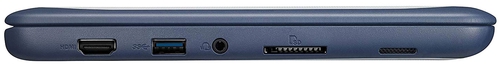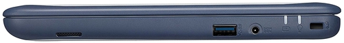 ДизайнУ ноутбука жесткий корпус: верх представлен толстоватой пластиковая крышка, окруженная резиновыми накладками темно-синего цвета. Пару слов о верхней панели: она матовая, немаркая, при нажатии не прогибается. Посередине находится логотип бренда. Само собой, такое «обмундирование» не делает корпус утонченным и элегантным, зато позволяет избежать вмятин и других механических повреждений. ![]() Открываем крышку: дисплей окружен толстыми рамками. На верхнюю вынесен глазок веб-камеры, снизу – еще один логотип компании ASUS. Шарнирный механизм представляет собой продолговатую петлю, которая надежно удерживает экран в заданном положении. Угол раскрытия дисплея составляет 180 градусов – идеально, чтобы посмотреть интересное видео в компании друзей. ![]() А теперь главное: устройство выдерживает падение с высоты 0.9 м, а его клавиатура защищена от протечки воды объемом до 66 мм (примерно четверть стакана). Еще один плюс: на днище ноутбука находятся две резиновые полосы, которые крепко сцепляются с любой устойчивой твердой поверхностью. Как следствие, девайс сложно сдвинуть со стола даже нарочно, не говоря уж о случайности. Простота в ремонте – еще одна характеристика, которая выгодно отличает ASUS Chromebook C202SA от других моделей. Так, например, если сломается клавиатура или тачпад, не придется снимать всю материнскую плату, достаточно заменить лишь поломанный элемент. ![]() Несмотря на изобилие резиновых накладок, ноутбук получился не слишком громоздким. Его вес составляет 1.2 кг, а размеры – 294х200х22.5 мм, то есть девайс спокойно помещается в рюкзак. Можно сказать, что устройство было разработано с учетом потребностей и особенностей школьника: ноутбук не поцарапается в сумке и не сломается, если упадет или на него попадет вода. Дисплей, звук и веб-камераУ лэптопа 11.6-дюймовый экран с соотношением сторон 16:9 и разрешением 1366х768 пикселей. Его яркости достаточно для комфортной работы в помещении. Несмотря на матовую поверхность дисплея, которая позволяет избежать бликов, использовать лэптоп на улице в солнечную погоду не советуем: скорее всего, содержимое будет нечитабельным. ![]() Дисплей воспроизводит около 58% цветовой гаммы sRGB, а значит, он не подходит для профессиональной работы с цветом. Вообще ситуация с отображаемым спектром цветов у экрана не очень хорошая: красный уходит в розовый, зеленый выглядит бледнее и т. д. Ничего криминального, просто будьте к этому готовы. Два стереодинамика звучат посредственно: верхние и средние частоты присутствуют, басы – нет. На максимальной громкости звук искажается. Есть два варианта: слушать что-либо на ноутбуке негромко, в качестве фона, либо подключать наушники или внешнюю колонку. HD веб-камера подходит для видеозвонков. Изображение, которое она транслирует, будет нечетким и тусклым, однако для Skype этого должно быть достаточно. Клавиатура и тачпадНоутбук наделен клавиатурой островного типа с крупными квадратными кнопками. Маркировка выполнена в сине-зеленой гамме, которая все же проигрывает белому цвету. У клавиш длинный ход (2 мм) и отменная отдача – кнопки сразу отскакивают после нажатия. Печатать на такой клавиатуре – одно удовольствие! Удобно, да и руки не устают. ![]() Раскладка стандартная, поэтому клавиатурный блок подходит даже для слепой печати. Часто нажимаемые кнопки крупнее обычных, а именно [Ente