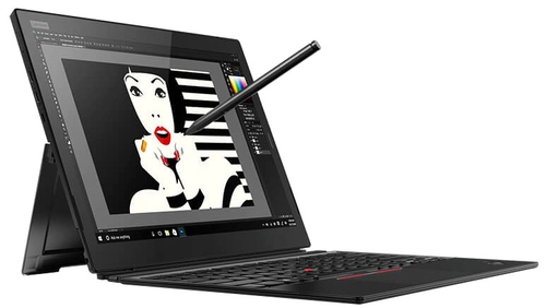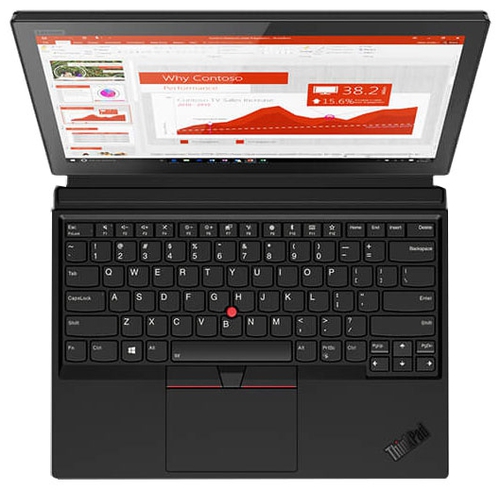 ДизайнТрансформер выполнен из пластика, на вид прочного и надежного. Корпус черный, все поверхности, кроме экрана, матовые, пыль и отпечатки пальцев к ним почти не пристают. Острые углы очень подходят этому устройству, добавляют дизайну строгости и сдержанности. Крышка планшета условно разделена на две равные части. Верхнюю половину украшают камера и название линейки. Низ образует подставку для крепкой фиксации девайса, чтобы руки оставались свободными. Угол раскрытия подставки регулируется, максимальный составляет 180 градусов. ![]() Дисплей окружен рамками среднего размера, на правой находится дактилоскопический сканер. От механических повреждений экран защищает стекло Gorilla Glass. Дисплей сенсорный и поддерживает работу стилуса. Последний, правда, не входит в комплект поставки, но его можно купить отдельно. Док-клавиатура подключается к дисплею с помощью магнитов, поэтому держится крепко. Ее можно приподнять, так что клавиатура будет под небольшим углом, чтобы руки не уставали. ![]() Lenovo ThinkPad X1 прошел военные испытания, его можно эксплуатировать даже в экстремальных условиях, потому как устройству не страшны температурные перепады, пролитая жидкость и удары. Напоследок о мобильности девайса: размеры планшетного ПК – 304х226х9 мм, вес – 890 г. Док-клавиатура делает конструкцию на 6 мм толще и на 380 г тяжелее. Дисплей, звук и веб-камераПланшет наделен экраном диагональю 13 дюймов с разрешением 3000х2000 пикселей. Максимальной яркости хватает для комфортной работы в помещении и на улице в пасмурную погоду. При солнечном свете дисплей будет бликовать из-за глянцевой поверхности. Цветопередача экрана корректная и насыщенная, изображения выглядят сочными и реалистичными. Можно попробовать использовать дисплей для полупрофессиональной обработки фото. ![]() Матрица IPS обеспечивает широкие углы обзора и независимо от ракурса содержимое экрана остается читабельным. В общем-то, круг применения дисплея широк: от дизайнеров до пользователей, которые хотят насладиться яркой и насыщенной картинкой при просмотре любимого фильма или видеоролика. ![]() Две узкие решетки динамиков Dolby Audio Premium расположены на боковых гранях экрана. Они направлены на пользователя, поэтому звук кажется отчетливым. Акустика звучит хорошо: звучание сбалансированное, на максимуме не хрипит. Максимальной громкости достаточно, чтобы заполнить звуком небольшое помещение. Трансформер оснащен двумя камерами. Разрешение фронтальной составляет 2 Мп – то, что нужно для видеообщения по Skype. Опционально передняя камера может быть инфракрасной для распознавания лиц (вместо сканера отпечатка пальца). Основная камера на 8 Мп, с ее помощью можно сделать фотографии. Правда, лучше не фотографировать при тусклом освещении, так как качество изображения значительно ухудшается. Клавиатура и тачпадДок-клавиатура островного типа, с плотной компоновкой, немного утоплена в поверхность. Клавиши квадратные, чуть скруглены в нижней части. Маркировка белая, хорошо заметная на черном фоне. Ход кнопок средний, они нажимаются в меру легко, чувствуется отдача. Размер часто нажимаемых клавиш больше, у остальных, поэтому по ним просто попадать. Стрелочный блок миниатюрен и не отделен от основных кнопок свободным пространством. В середине клавиатуры имеется трекпоинт красного цвета для быстрого и точно