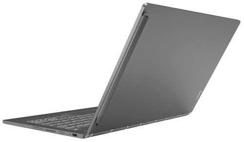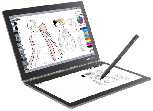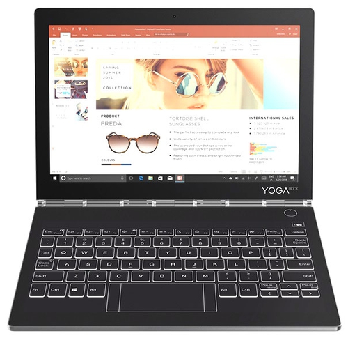 ДизайнИзначально хочется отметить, что ноутбук получился очень тонким, его размеры – всего 260х179х10 мм. Вес составляет 0.77 кг, то есть, закинув в сумку, про девайс можно не вспоминать на протяжении дня. Корпус изготавливается из алюминия, поэтому устройство не только легкое, но и прочное. Цвет – темно-серый, скорее, даже графитовый, одновременно универсальный и немаркий. Поверхность крышки – матовая, из деталей на ней – только логотип компании в нижней правой части. ![]() Верх и низ конструкции соединяются шарниром, напоминающим часовой браслет. Мало того, что он выглядит необычно и даже футуристично, так шарнир к тому же долговечный и удобный в работе. Механизм довольно тугой: одной рукой крышку не поднять, зато в заданном положении она держится крепко. Экран откидывается на 360 градусов, благодаря чему, помимо стандартных режимов – ноутбук и планшет – доступны еще два промежуточных: консоль и презентация. Экран окружен довольно толстыми рамками. На верхней грани – глазок веб-камеры, внизу – логотип линейки. Что касается дополнительного дисплея, то у него стеклянная поверхность, прохладная на ощупь. Портов мало, но они равномерно расположены по боковым граням девайса. ![]() Верхняя и нижняя половины корпуса плотно прилегают друг к дружке, так, что нет даже маленького углубления для пальцев, чтобы открыть ноутбук. Lenovo придумала новую фишку: нужно дважды постучать (или два раза нажать на кнопку включения устройства сбоку) по крышке ноутбука, и крышка откроется сама. Это возможно благодаря слаженной работе магнитов, датчиков движения и других сенсоров. Напоследок о качестве сборки: она бесподобна, как и всегда с устройствами линейки Yoga. Все детали подогнаны идеально, в работе не возникает ни скрипов, ни люфтов, ни других неприятностей. Дисплей, звук и веб-камераНачнем с главного экрана: он наделен диагональю 10.8 дюймов и разрешением 2560х1600 пикселей. Дисплей сенсорный и поддерживает работу стилуса Precision Pen, который, к слову, не входит в комплект поставки. Яркости со средним показателем 340 кд/м2 хватает для комфортной работы в помещении и даже на улице. Однако поверхность глянцевая, поэтому в солнечную погоду бликов не избежать. Цветопередача четкая и насыщенная, дисплей воспроизводит 144% цветовой гаммы sRGB, а значит, подойдет для профессиональной обработки. Сенсорный экран очень чувствителен к касаниям и оперативно выполняет команды. Единственное, что нам не понравилось, – толстые рамки вокруг дисплея, которые визуально съедают часть и без того не очень большой площади. ![]() С основным экраном все, в общем-то, понятно, гораздо больший интерес представляет дополнительный, с Full HD-разрешением. Это монохромный дисплей с медленной частотой обновления, за счет чего потребляет совсем немного электроэнергии. Он имеет три режима: клавиатура (об этом – в следующем разделе), планшет для работы с заметками и ereader, попросту – читалка. Само собой, экран поддерживает работу стилуса. Цифровое перо подключается по Bluetooth, предлагает 4096 уровней нажатия и работает от батареек ААА. Писать на стеклянной поверхности удобно, хотя и нет ощущения, будто пишешь на бумаге, оттого – непривычно. Что касается режима чтения, то сейчас устройство работает лишь с изображениями и pdf-файлами, однако уже в январе компания обещает поддержку форматов mobi и ePub. ![]() Два динамика с технол