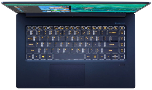 ДизайнНоутбук очень миниатюрный и в самом деле весит почти 1 кг – в такое реально сложно поверить. Чтобы добиться такой легкой конструкции производитель припаял SSD и RAM к материнской плате без возможности их удаления. Кроме того, корпус сделан из магниевого сплава – крепкого металла, который, однако, мало весит. Расцветок две: классическая серая и смелая синяя. Все поверхности матовые, чуть шероховатые на ощупь. Посередине крышки – логотип Acer крупными золотистыми буквами. ![]() Дисплей сенсорный, с тонкими боковыми рамками (5.87 мм). Традиционно на верхней рамке находится веб-камера, снизу – еще одна эмблема бренда. Дисплей крепится к нижней части конструкции с помощью длинного шарнира, крепкого и в меру тугого. Максимальный угол раскрытия равен 180 градусам – функция необязательная, но приятно, что такая возможность есть. На рабочей зоне – большой тачпад и дактилоскопический сканер рядом; выше – полноразмерная клавиатура. ![]() Вновь возвращаемся к мобильности лэптопа: размеры корпуса – 358х230х16 мм, вес, повторимся, – 0.99 кг. К сожалению, малая толщина и вес привели к деформациям крышки и рабочей зоны при давлении на них. К слову, если надавить на крышку, это никак не обозначится на экране – что уже хорошо. Если не считать прогибов, качество сборки хорошее: нет острых краев, люфтов, скрипов. Дисплей, звук и веб-камера15.6-дюймовый экран обладает Full HD-разрешением и плотностью пикселей 141 ppi. Яркость и контрастность дисплея высоки – 345 кд/м2 (максимум) и 1100:1. Кстати, производитель не использует ШИМ для экрана в этом ноутбуке, что позволяет избежать утомления глаз пользователя. Соответствия пространствам sRGB и AdobeRGB – 98 и 63%, то есть работа с цветом не должна представлять проблему, во всяком случае, на любительском и полупрофессиональном уровнях. ![]() Матрица IPS – это гарантия широких углов обзора у дисплея, цвета остаются четкими и насыщенными под любым ракурсом. Хороший запас яркости и контрастности позволили бы работать с устройством на улице, если бы не глянцевая поверхность экрана. В пасмурную погоду это, в принципе, реально, но в солнечную содержимое будет слабо читабельным. Емкостный сенсорный дисплей поддерживает 10-пальцевый мультитач. Он реагирует на касания быстро, без торможений выполняет команды. ![]() Стереодинамики Dolby Audio Premium находятся в нижней части девайса. Они выдают объемный и громкий звук, лишенный, однако, басов. Чтобы исправить это, рекомендуем подключить наушники или же внешние колонки. 1-мегапиксельная веб-камера делает снимки с максимальным разрешением 1280х720 пикселей. Она подходит для видеообщения и все же транслирует нечеткую, зернистую картинку. Клавиатура и тачпадКлавиатура с островными клавишами заметно утоплена в поверхность. Кнопки квадратные, гладкие на ощупь, с плотной компоновкой. Ход клавиш короткий, отдача четкая. Нампада нет. Часто нажимаемые кнопки, например, [CapsLock], [Shift], [Enter] выглядят крупнее других клавиш. Клавиатура оснащается подсветкой без возможности регулировки яркости. Кнопки подсвечиваются ярко, желтоватым светом. Во время интенсивной печати подложка немного прогибается по центру, но в целом клавиатура хорошо подходит для повседневных задач, руки от печати не устают даже после насыщенного рабочего дня. ![]() Тачпад довольно большой и гладкий, вся его площадь, даже уголки, хорошо реагирует на команды. Он 