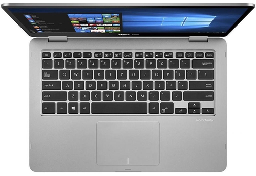 ДизайнПри изготовлении лэптопа использовали и алюминий, и пластик. Металл можно найти только в области крышки, для защиты панели дисплея от внешнего давления. Остальное пространство – изнутри и снизу – пластиковое, но достаточно прочное, чтобы без страха давить на корпус с умеренной силой. Практичность ASUS VivoBook Flip TP401MA подтверждается цветовым оформлением – черный и темно-серебристый оттенки как нельзя более универсальны для повседневной работы практически в любых условиях. Кроме того, серый цвет и металл хорошо скомбинированы для препятствия накопления отпечатков пальцев в верхней части корпуса. ![]() Экран лэптопа окружен довольно массивной рамкой, более тонкой по бокам и утолщенной сверху/снизу. Он сенсорный и глянцевый, вдобавок за счет особенностей конструкции может изменять угол наклона, работая в режимах презентации, консоли, планшета и ноутбука. Шарниры хорошо удерживают панель в заданном положении, кстати, к качеству сборки претензий в принципе не имеется – корпус хорошо скроен и настроен служить пользователю максимально длительное время. ![]() ASUS VivoBook Flip TP401MA весит ровно полтора килограмма, габариты составляют 327х226х15 мм. Это достойно выглядящий и не менее хорошо собранный лэптоп, который предназначен для работы в офисе и вне его. ![]() Дисплей, звук, веб-камера14-дюймовый глянцевый экран демонстрирует стандартное соотношение сторон 16:9 и разрешение 1920х1080 пикселей. Максимальной яркости здесь достаточно, чтобы поработать с ноутбуком и на улице, и в помещении, при ярком солнечном освещении и в сумерках. Емкостный дисплей обладает прекрасной чувствительностью, он резво реагирует на касания, команды выполняет корректно и очень быстро. ![]() Здесь также предусмотрена матрица IPS, с присущими ей широкими углами обзора, что логично для трансформера. Ведь будь ситуация другой, о каком комфорте могла бы идти речь? Что до прочих характеристик дисплея, то соответствие цветовому пространству sRGB составляет 72% – этого хватит для обработки изображений в программах-редакторах, к примеру, в Photoshop. В целом, экран трансформера можно оценить высоким баллом, несмотря на умеренную цену ASUS VivoBook Flip TP401MA. В ноутбуке предусмотрена встроенная веб-камера с минимальным разрешением 0.3 Мп. Естественно, фотографирует она плохо, снимки темные и зернистые. Этим, впрочем, можно удовлетвориться, чтобы пообщаться с собеседником в Skype. ![]() Два динамика Harman Kardon с технологией SonicMaster генерируют качественный, но очень тихий звук. Однозначно, здесь стоит сразу использовать наушники или, например, Bluetooth-колонку, чтобы полноценно смотреть видео и слушать музыку. Клавиатура и тачпадОстровная клавиатура заметно притоплена в корпус, чтобы избежать ее контакта с сенсорным экраном в закрытом положении лэптопа. Она изготовлена на достойном уровне: используется классическая раскладка, клавиши четко промаркированы и расположены очень просторно. Кнопки демонстрируют довольно короткий ход, но нажимаются без усилий и бесшумно. При наборе текста к этому привыкнуть очень легко, к тому же длительная печать не вызовет усталости. С ASUS VivoBook Flip TP401MA хорошо работать в темное время суток благодаря светодиодной подсветке. ![]() Тачпад среднего размера, с приятно шероховатой поверхностью и отличной чувствительностью. Он имеет четкие границы и поддерживает жесты мультитач, выполняя и