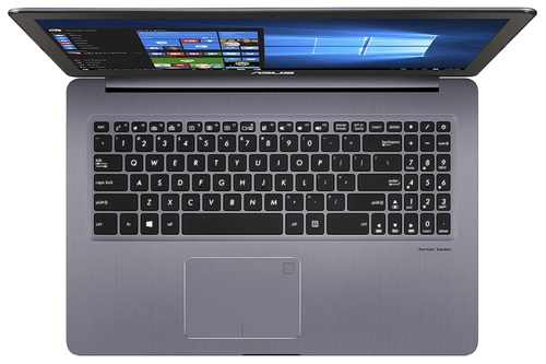 ДизайнВнешний вид ноутбука универсальный, подходящий для учебы, офиса, бизнеса. Весь корпус, кроме пластикового днища, сделан из алюминиевого сплава, крепкого и вместе с тем легкого материала. Лэптоп темно-серого цвета, с черными рамками вокруг экрана и клавиатурой, выглядит скучновато, зато практично. На крышке находится серебристый логотип бренда – единственная деталь на этой панели. ![]() Верх и низ конструкции соединяются с помощью продолговатого шарнирного элемента. Он крепко удерживает дисплей под нужным углом (до 150 градусов), тот не заваливается вперед или назад. На передней панели есть кромка, за которую надо зацепиться, чтобы поднять крышку. Сделать это одной рукой не получится – низ последует за верхом. Экран окружают весьма толстые рамки, все же у современного ноутбука надеешься на то, что они будут тоньше. Четыре резиновые ножки на днище надежно фиксируют конструкцию на столе. Порты равномерно разнесены по боковым граням девайса. ![]() В целом, дизайн устройства подходящий для повседневного использования. Матовые поверхности немаркие, а на темном фоне незаметны отпечатки пальцев. Качество сборки хорошее: панели плотно прилегают друг к другу, не оставляя зазоров, нет и люфтов; правда, не обошлось и без минуса – крышка деформируется, если на нее надавить. Кроме того, на устройстве быстро образуются царапины и сколы, особенно при частом ношении в рюкзаке без чехла. Вес ноутбука – 1.99 кг, размеры – 380х256х19 мм. Дисплей, звук и веб-камера15.6-дюймовый экран ноутбука имеет разрешение 3840х2160 пикселей с соотношением сторон 16:9. Яркость дисплея не очень высокая – 305 кд/м2, и это, пожалуй, его самая большая проблема. Так, смотреть кино или что-то другое, даже в глубине комнаты, будет комфортно с яркостью около 70%, а на улице – со 100%. Зато панель матовая, а значит, блики ей не страшны. ![]() Цветовой охват sRGB равен 98%, NTSC – 72%, следовательно, работать с изображением могут и фотографы с дизайнерами; вкупе с высокой детализацией результат должен быть превосходный. Используемая здесь матрица – IPS, она обеспечивает широкие углы по вертикали и горизонтали (до 178 градусов). Так что независимо от ракурса картинка выглядит четкой и насыщенной. ![]() Два стереодинамика компании Harman/Kardon расположены на днище ноутбука. Они выдают чистый, объемный звук, который не искажается на максимальной громкости. Правда, если слушать музыку громко, нижняя часть лэптопа начинает вибрировать. Что касается веб-камеры, то ее разрешение стандартное и составляет 1.3 Мп. Качество изображения соответствующее – картинка зернистая и нечеткая, но для видеочатов возможностей вебки вполне достаточно. Клавиатура и тачпадПолноразмерная клавиатура оснащается крупными квадратными кнопками с неплотной компоновкой. Клавиши на ощупь немного шероховатые, тактильно приятные, срабатывают тихо (за исключением пробела). Ход короткий – 1.4 мм, отдача вполне ощутимая. Печатать комфортно, руки не испытывают ни малейшего дискомфорта даже после активного трудового дня. Клавиатура оснащается трехуровневой подсветкой, так что можно набирать тексты если освещение слабое или отсутствует вовсе. Кнопка включения лэптопа расположена в верхнем правом углу. Клавиша небольшая, из-за чего ее нелегко нащупать вслепую. ![]() У тачпада четкие границы и гладкая поверхность. Манипулятор поддерживает мультитач-ж