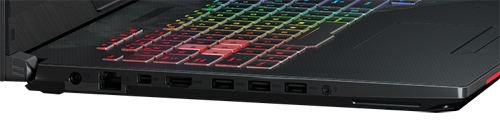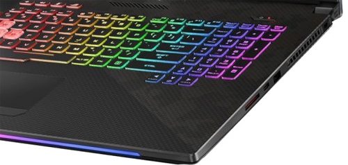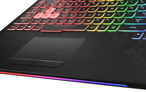 ДизайнДевайс никак не выглядит простоватым. Его корпус оформлен не агрессивно, но способен запомниться окружающим. Так, на крышке и в интерьере есть ненавязчивый текстурный узор; оригинальный камуфляжный декор можно увидеть в рабочей зоне. Дополняет стиль и особо привлекает внимание диагональная полоса, а также знакомый геймерам логотип ROG. За счет серой расцветки дизайн ноутбука не кажется агрессивным. В то же время отсутствие плавных переходов, острые углы придают лэптопу строгости и даже собранности, так сказать, перед боем. В целом оформление неординарное, к тому же помогает отчасти скрыть отпечатки пальцев. Практичности добавляет и резиновая окантовка, защищающая дисплей от контакта с клавиатурой в закрытом состоянии. ![]() Конструкция ASUS ROG SCAR II Edition GL764GW-EV055T выполнена из анодированного алюминиевого сплава, что обещает прочность и надежность. Наряду с ним присутствует и пластик. При стыковке деталей в ноутбуке не наблюдается зазоров. Продавить корпус устройства очень сложно. Модель примечательна тонкими рамками вокруг дисплея, что гарантирует увеличенную площадь просмотра. Порты и разъемы, размещенные неравномерно, занимают боковые стороны. В корпусе предусмотрено достаточное количество вентиляционных отверстий. ![]() Если сравнивать со многими игровыми девайсами, то наш можно назвать относительно компактным. В частности, 17-дюймовый ноутбук имеет размеры 399х273х26 мм. Что до веса, то 2.9 кг – не самый оптимальный вариант. Тем не менее все это не станет причиной отказа от того, чтобы периодически брать ASUS GL764GW с собой в поездки. Дисплей, звук, веб-камераЭкран ноутбука обладает размером по диагонали 17.3 дюйма и разрешением 1920х1080 пикселей. Покрытие дисплея матовое, поэтому препятствует появлению отражений и бликов. Правда, цвета в изображении выглядят не такими сочными, как могло бы быть при глянцевой поверхности. Особые плюсы экрана – частота обновления 144 Гц и время отклика 3 мс. Благодаря этому не будет задержек при отображении контента, сведутся к минимуму визуальные артефакты, что важно во время игры. Также стоит отметить наличие IPS-матрицы. С ее помощью просмотр картинки удобен с позиции до 178 градусов по вертикали или горизонтали. Что касается показателей яркости 300 кд/м2 и контрастности 800:1, то они не слишком высокие. ![]() В ноутбуке установлено два стереодинамика, которые выдают громкий мощный звук. При воспроизведении слышатся доминирующие высокие частоты, а интенсивное звучание не приводит к появлению искажений. Басы более выразительны в случае подключенных наушников. Совместно с гарнитурой и поддержкой технологии SonicMaster можно оценить, например, в игре глубину звука, четкость и пространственность. Конечно, получится послушать музыку и в фоне, тогда качества акустики будет более чем достаточно. Веб-камера с HD-разрешением позволяет записывать видео, выполнять снимки. Главное, что она хорошо справляется с основной своей функцией – организацией видеосвязи. Расположение вебки нетрадиционное: объектив можно увидеть в нижней части дисплейной рамки в окружении массива микрофонов, снижающих шумы во время общения. ![]() Клавиатура и тачпадОсобенностью клавиатурного блока является ускоренное срабатывание кнопок, что немаловажно в процессе игры. Это возможно благодаря технологии Overstroke. Вдобавок радует настраиваемая четыр