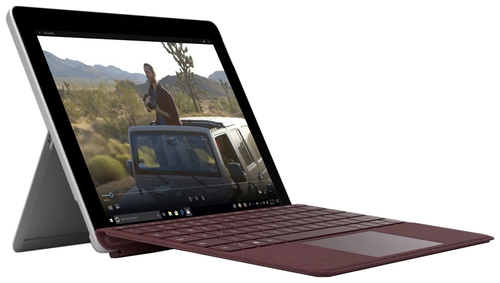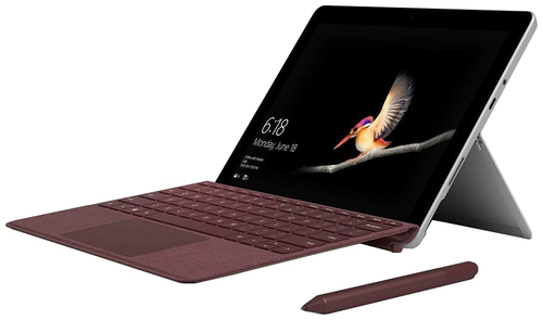ДизайнMicrosoft Surface Go выполнен в уже знакомом дизайне – корпус из магниевого сплава, фирменная подставка с логотипом производителя и защитным прочнейшим стеклом третьего поколения Corning Gorilla Glass. Угол наклона планшета можно регулировать в рамках до 170 градусов, шарнир работает туго и производит впечатление надежной конструкции. ![]() Устройство невероятно удобно в работе, благодаря материалам корпуса его приятно держать в руках, а компактность гарантирует легкость эксплуатации. К качеству сборки претензий вообще нет, представленный взору аппарат лишен щелей, зазоров и скрипов при сдавливании. Несмотря на рекламируемую дешевизну, Microsoft Surface Go совершенно не уступает более дорогостоящим товарищам в вопросе прочности или практичности. ![]() Вес гаджета составляет всего 522 г, габариты корпуса 245х175х8.3 мм. Презентабельный и небольшой, с хорошими характеристиками дисплея и фирменным дизайном – Microsoft Surface Go, однозначно, может использовать свой ценник как одно из главных и явно выгодных преимуществ. Дисплей, звук, веб-камераАппарат оснащен 10.1-дюймовым сенсорным дисплеем с разрешением 1800х1200 пикселей. Соотношение сторон составляет 3:2, благодаря матрице IPS углы обзора максимальны и изображение на глянцевом экране остается четким и ярким при изменении угла наклона. Подключаемая клавиатура в комплект не входит (отдельно стоит $130), а потому тачскрин является единственным устройством ввода, и хочется отметить, что со своей задачей он справляется превосходно. Панели дисплея реагирует на касания мгновенно, задачи выполняются корректно, есть поддержка работы со стилусом Active Pen, который также можно приобрести дополнительно за $100. ![]() Максимальная яркость экрана достигает показателя в 426 нит, равномерность подсветки оценивается на 88%, контрастность 1417:1, уровень черного – 0.31 нит. Иными словами, Microsoft Surface Go стал обладателем отличнейшего дисплея для своего уровня, он подходит не только для досуга, но и для работы с видео и фотографиями. Пара динамиков расположена на верхней дисплейной рамке планшета, звучат они неплохо, максимальная громкость довольно высока. Звук сбалансирован по частотам, приятен слуху, чего более чем достаточно для мобильного устройства. Бюджетный планшет Microsoft Surface Go оснащен несколькими камерами – помимо традиционных фронтальной и тыловой с разрешением 5 Мп и 8 Мп соответственно, здесь предусмотрен модуль для распознавания лиц в рамках работы технологии Windows Hello. ![]() Клавиатура и тачпадИз того, что можно и даже нужно докупить к Microsoft Surface Go, можно отметить клавиатуру Signature Type Cover и стилус Surface Pen. Оба аксессуара представлены в четырех цветах – черный, серый, синий и бордовый, поэтому, в зависимости от вкусовых особенностей пользователя, можно либо скомбинировать одинаковые расцветки, либо разнообразить образ. ![]() Пристегиваемая клавиатура дополнительно выполняет функцию защитного получехла – ограждает дисплей от давления извне. Она оснащена светодиодной подсветкой белого цвета, клавиши с локализацией островного типа небольшие, но имеют четкую отдачу и работают тихо. Тачпад довольно крупный, с гладкой сенсорной площадкой и поддержкой жестов мультитач. ПроизводительностьПланшет Microsoft Surface Go MHN-00003 работает под управлением операционной системы Windows 10 Home 64 bit. В продаже есть несколько комплектаций устройства, отличающихся типом и об