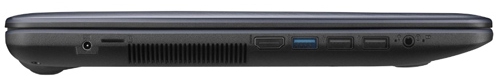 ДизайнНоутбук выпускается в корпусе из пластика. Габариты устройства составляют 381х251х27.2 мм, что не препятствует поездкам. Не отягощает и вес 2 кг, он приемлем для 15.6-дюймовой модели. Сборка VivoBook X543UB выполнена качественно, хотя незначительного прогибания крышки избежать не удалось. Зазоров в месте стыковки деталей мы не заметили. Угол раскрытия дисплея оптимальный для работы с девайсом за столом или на коленях. ![]() Оформление, на первый взгляд, чересчур скромное, что подчеркивается основной серой расцветкой. Однако есть и изюминка: текстура. Она делает панели более привлекательными, красивыми. На фоне отделки выигрышно смотрится логотип компании. Все поверхности корпуса сделаны матовыми. За счет этого отпечатки пальцев не так сильно видны. ![]() Интерьер ноутбука выполнен минималистично, но также элегантно. Дисплей окружают стандартные рамки. Как и основная поверхность, они шероховатые, исключают скольжение. В форме отсутствуют острые углы, корпусу присуща обтекаемость, что уводит от излишней строгости. Порты в девайсе располагаются неравномерно, доминируя на левом торце. ![]() Дисплей, звук, веб-камераВ данной конфигурации предусмотрен Full HD-дисплей с диагональю 15.6 дюймов. Это наилучший вариант, поскольку есть модели, где разрешение составляет 1366х768 пикселей. Нарекания только в одном: матрица TN не обладает широкими углами обзора. Из-за этого придется подстраиваться, поскольку наклон экрана, так или иначе приведет к инверсии, ухудшению яркости. Кстати, уровня яркости хватает для работы в помещении вне его – приходится всматриваться. Что касается матового покрытия, то оно препятствует бликам. Дисплей детализированно и реалистично передает цвета, однако не в той степени, чтобы обрабатывать изображения на профессиональном уровне. Читать с экрана комфортно благодаря поддержке Eye Care. ![]() Акустика в ASUS VivoBook X543UB имеет поддержку фирменной технологии ASUS SonicMaster. Звук заметно оптимизирован, в чем не последнюю роль выполняет AudioWizard. Пользователь всегда сможет гибко настроить необходимый режим прослушивания: фильмы, речь, музыка, игры и т.п. Два динамика мощностью 2 Вт каждый выведут четкое (без шумов) и довольно громкое, как для ноутбука, звучание. Единственное, чтобы больше сбалансировать частоты придется воспользоваться гарнитурой. Видеосвязь в ноутбуке реализуется посредством VGA-веб-камеры. При недостаточном освещении изображение не отличается четкостью. В целом этого хватает для общения с коллегами или друзьями в видеорежиме. ![]() Клавиатура и тачпадПолноразмерный клавиатурный блок наделен нампадом, ускоряющим ввод числовых данных. Все кнопки клавиатуры характеризуются четким нажатием (1.8 мм) с небольшой отдачей. Плоская поверхность клавиш, а также стандартная раскладка не мешают набору текстов. Также приятно, что блок стрелок сужен минимально, поэтому позиционировать комфортно. Все кнопки находятся в пределах клавиатуры. ![]() Тачпад отличается хорошей чувствительностью. Он реагирует на касания по всей площади, позволяет выполнять мультитач-жесты (прокрутку, изменение масштаба). Под сенсорной зоной находятся две мышиные клавиши. В этом месте нажатие осуществляется четко, срабатывание – без задержек. ПроизводительностьASUS VivoBook X543UB-DM939T (90NB0IM7-M13230) работает на предустановленной Windows 10 в версии Home. Операционная система 64-разрядная. Са