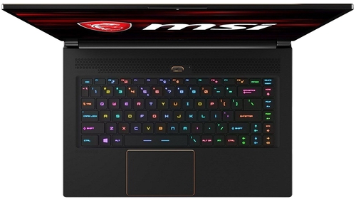 ДизайнНесомненно, MSI GS65 Stealth Thin 8RE обеспечен совершенно необычным и невероятно приятным глазу корпусом. Металлическая оболочка в темном цвете отлично подчеркнута матовым покрытием, которое хоть и непрактично с точки зрения эксплуатации (остаются явные отпечатки пальцев), существенно повышает статусность и серьезный уровень устройства. На крышке корпуса расположен логотип серии в виде щита с драконом, а крупный шарнирный механизм обеспечивает раскрытие дисплея на 180 градусов. ![]() К сожалению, несмотря на дороговизну лэптопа, здесь есть слабое место – качество сборки и использованных материалов. При сдавливании корпуса половинки явно изгибаются, слышен характерный треск плохо прилегаемых элементов. Весит MSI GS65 Stealth Thin 8RE 1.9 кг при габаритах 358х248х18 мм. ![]() Более чем треть нижней панели занимает решетка вентиляции. Кроме того, на днище находятся два динамика, оформленные оригинальной зоной перфорации, и две продолговатые опорные ножки. Но стоит отметить, что доступ к внутренним компонентам весьма затруднен – чтобы добраться к планкам памяти, к примеру, придется откручивать всю нижнюю панель, зафиксированную многочисленными винтами. Дисплей, звук, веб-камераДанный игровой ноутбук оснащен 15.6-дюймовым дисплеем с разрешением 1920х1080 пикселей и матрицей IPS. Качественный игровой процесс обеспечивается, помимо всего прочего, частотой обновления 144 Гц – это потрясающая плавность картинки, которая заметна с первого взгляда. Максимальная контрастность достигает 1150:1, цветопередача правильная и не требует дополнительной калибровки, углы обзора идеальны. С таким дисплеем невероятно приятно и комфортно работать, однозначно, в этом плане MSI GS65 Stealth Thin 8RE есть чем гордиться. ![]() Лэптоп оборудован двумя динамиками с поддержкой технологии Dynaudio, которые производят громкий и качественный звук. Здесь можно отметить наличие басов, практически полное отсутствие вибраций при изменении громкости, неплохую сбалансированность акустики в целом. Пожалуй, даже можно обойтись без наушников, чтобы насладиться громким и эпичным игровым процессом. Веб-камера с разрешением 1 Мп используется, к примеру, для общения в видеочатах, и со своей задачей она справляется на «четыре» по пятибалльной шкале оценивания. ![]() Клавиатура и тачпадОстровная клавиатура без дополнительного цифрового блока обеспечена RGB-подсветкой, с возможностью настройки яркости и цветности для каждой клавиши отдельно. С подобным решением можно играться бесконечно, подбирая световое оформление под настроение или удобство эксплуатации. Раскладка клавиатуры классическая, нанесена контрастным белым цветом, который хорошо виден на черных матовых клавишах. Кстати, форма последних – квадратная, со слегка скругленными уголками – максимально адаптирована для работы и игр. Кроме того, пользователю не придется привыкать к уменьшенному стрелочному блоку, так как все его кнопки полноразмерные и отлично нащупываются пальцами даже при слепом наборе. ![]() Тачпад со слегка шероховатой поверхностью демонстрирует отличный уровень чувствительности, идеально работая и реагируя на касания пользователя. Здесь есть поддержка разнообразных жестов мультитач, мышиные кнопки, спрятанные под общую панель, нажимаются бесшумно, с легким усилием. ПроизводительностьMSI GS65 Stealth Thin 8RE-228RU работает под управлени