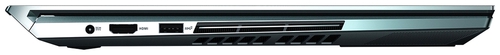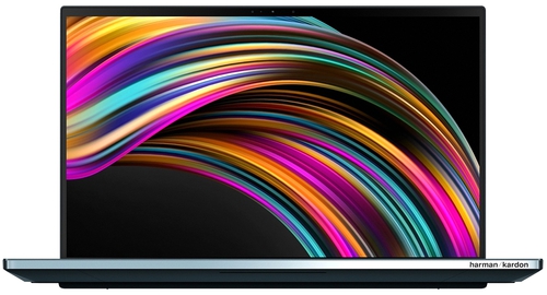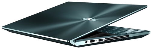 ДизайнКак и все ноутбуки серии ZenBook, наш герой изготавливается из алюминия. Крышку украшают логотип бренда и концентрические круги, сдвинутые вправо. Панель матовая, отпечатки собираются слабо, а те, что остаются, легко удалить. Производитель определяет цвет устройства как небесно-голубой, но на деле он, скорее, темно-зеленый. ![]() Сенсорный дисплей окружен тонкими рамками со всех сторон, на верхней находится веб-камера, а вот привычный логотип внизу отсутствует. Дополнительный экран, тоже сенсорный, получил матовую поверхность, которая не очень хорошо защищает его от отпечатков и разводов — протирать придется часто. Ниже находится клавиатура с цифровым тачпадом, который перенесен на место нампада. Свободного пространства для рук нет, поэтому устройство поставляется с упором, который предотвращает нагрузку на запястья. ![]() Производитель использует шарниры ErgoLift, которые приподнимают нижнюю часть корпуса над столом — так работать удобнее. Максимальный угол раскрытия крышки составляет примерно 120 градусов. Жаль, что не 180 и не 360 — в тандеме с дополнительным экраном получился бы интересный эффект. Качество сборки отличное: крышка не хрустит и даже под давлением не поддается скручиванию. Совсем немного прогибается клавиатура, но только если нажимать на кнопки очень интенсивно. Устройство громоздкое, поэтому и такое крепкое. Размеры корпуса — 359х246х24 мм, вес составляет 2.5 кг. Конечно, для частых путешествий такие габариты обременительны, гораздо удобнее использовать ноутбук как стационарный лэптоп. Дисплей, звук и веб-камераОсновной 15.6-дюймовый экран устройства имеет 4К-разрешение и матрицу OLED. Преимущество такой панели в том, что за счет малого времени отклика OLED-дисплей отображает чистое изображение с равномерной подсветкой, глубоким уровнем черного и отличной цветопередачей. Максимальная яркость — 380 кд/м2. Цветовой охват sRGB составляет 81%, AdobeRGB — 62%. ШИМ есть, поэтому после долгого дня глаза могут устать или будут напряжены. Углы обзора широкие — 178 градусов. Читабельность отличная, во всяком случае, в тени. А вот на солнце придется добавлять яркости, иначе будут мешать блики. ![]() Второй экран производитель назвал ScreenPad Plus. Его диагональ — 14 дюймов, а разрешение составляет 3840х1110 пикселей. Плотность пикселей у обоих дисплеев одинаковая — 282 ppi. Матрица здесь — IPS, и в сравнении с OLED заметно, что ее яркость, контрастность, цветопередача и время отклика проигрывают. Но это только в том случае, если целенаправленно выискивать недостатки, в работе же различия минимальны и вообще некритичны. Поверхность экрана матовая, что логично, потому что верхний глянцевый дисплей наверняка зеркалил бы нижний. Экраны можно использовать как по отдельности, так и в связке. Вполне реально запускать приложения, смотреть видео, перемещать окна, использовать многозадачный режим — второй дисплей воспринимается как дополнительный монитор. В комплект поставки ноутбука включен стилус, который взаимодействует с обоими экранами: можно рисовать, делать пометки, вводить текст. ![]() Два стереодинамика Harman/Kardon находятся на днище, ближе к передней грани. Максимальная громкость не очень высокая, однако посмотреть фильм с комфортом, без подключения внешней акустики, получится. Правда, на максимуме начинает вибрировать корпус с левой и правой сторон, однако иска