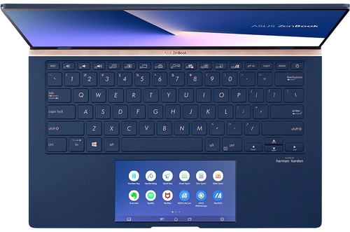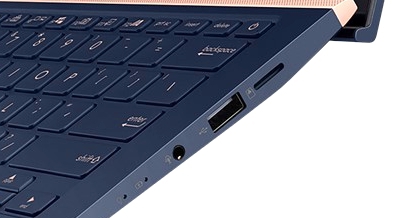 ДизайнВнешне ноутбук выглядит одновременно стильно и элегантно — это считается фишкой серии ZenBook. Устройство поставляется в универсальном цвете Royal Blue, который, хоть и выглядит здорово, но весьма активно собирает отпечатки пальцев. В центре верхней панели — серебристый логотип ASUS в окружении концентрических кругов. Боковые рамки экрана практически отсутствуют, а верхняя и нижняя — очень тонкие. ![]() В ноутбуке используется шарнирный механизм ErgoLift. Его особенность в том, что при поднятии крышки одновременно приподнимается нижняя часть устройства, что позволяет снять напряжение с запястий во время набора текста и улучшить вентиляцию. Крышка открывается одной рукой, максимальный угол раскрытия относительно небольшой — 145 градусов. Клавиатура слегка утоплена в поверхность и расположена довольно близко к экрану. Под ней — крупный тачпад, к функциям которого мы вернемся в соответствующем разделе. ![]() Для апгрейда лэптопа следует открутить восемь винтиков, затем еще два, которые хитро замаскированы под резиновыми ножками на днище. Оперативная память распаяна на плате, но при необходимости можно будет разместить здесь более емкий накопитель — вот и все возможности обновления. Конструкция лэптопа прочная, однако при сильном давлении тонкая крышка будет немного прогибаться. Девайс весит всего 1.26 кг, его размеры — 319х199х17 мм. Дисплей, звук и веб-камера14-дюймовый экран имеет разрешение Full HD с соотношением сторон 16:9 и плотностью пикселей 157 ppi. Максимальная яркость достигает около 350 кд/м2, коэффициент контрастности равен 1320:1. Соответствие стандарту sRGB составляет 90%, AdobeRGB — примерно 70%, так что обрабатывать фото можно профессионально. Цветопередача естественная, приятная для глаз. ШИМ отсутствует, а значит, даже после целого рабочего дня ни глаза, ни голова не будут болеть. IPS-матрица выдает широкие углы обзора, цвета не изменяются при смене ракурса. Панель матовая, поэтому солнечные блики не будут мешать использованию ноутбука на улице. ![]() Два динамика ASUS SonicMaster находятся на днище устройства, ближе к боковым граням корпуса. Звук на максимуме довольно громкий, без искажений. Ощущается нехватка басов, но с высокими и средними частотами все в порядке. При громкости более 60% нижняя часть корпуса начинает вибрировать, причем вибрация передается телу, если держать устройство в руках или на коленях, и эти ощущения не самые приятные. ![]() В ноутбуке установлена 3D-камера с инфракрасным датчиком и разрешением HD. Она не особо отличается от камер большинства других современных лэптопов: она транслирует размытое, не очень яркое изображение. Однако поддержка Windows Hello — это неплохо, все же защита от посторонних пользователей очень важна. Клавиатура и тачпадКлавиатура островного типа, с неплотной компоновкой. У нее стандартная раскладка и хорошо заметная белая маркировка на синих кнопках. Клавиши полноразмерные, их ход довольно короткий — 1.4 мм. Точка срабатывания находится в самом низу, поэтому на кнопки надо нажимать уверенно, иначе касание просто не сработает. Клавиши управления крупные, по ним легко попадать. Стрелочный блок небольшой, оттого нельзя сказать, что удобный. Клавиатурные кнопки срабатывают тихо, поэтому ноутбук подойдет для работы в библиотеке или в других местах, где шум нежелателен. Есть подсветка с белыми светодиодами и золот