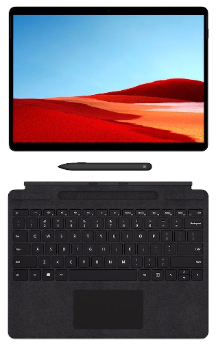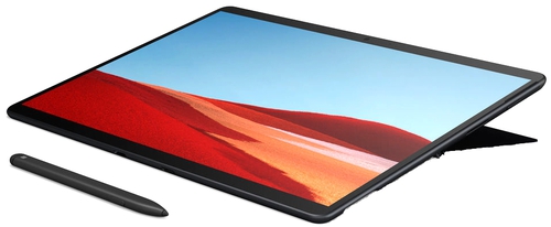 ДизайнПланшет доступен исключительно в черном цвете. Материал — анодированный алюминий; отделка выглядит дорого и статусно. Панели матовые и гладкие, слабо восприимчивые к отпечаткам пальцев. Традиционно для планшетов Surface корпус новинки тонкий, легкий и крепкий. На нижней половине крышки, точнее, на подставке, находится серебристый логотип бренда — единственная глянцевая деталь дизайна. Шарнирный механизм продуман таким образом, что крышка откидывается примерно на 170 градусов, то есть не лежит полностью на поверхности. ![]() Боковые рамки экрана довольно узкие, верхняя и нижняя — заметно шире. Это вполне оправдано: над дисплеем находятся веб-камера и микрофоны, а внизу небольшая полоса экрана «съедается» клавиатурой. Как и в случае с другими таблетками Microsoft, аксессуары не входят в комплект поставки, а значит, док-клавиатуру и стилус придется докупать самостоятельно. ![]() Планшет собран на совесть: подставка не болтается, крышка не прогибается, все детали подогнаны отлично. Он мобильный и компактный: вес устройства составляет всего 774 г, а размеры — 287х208х7.3 мм. Дисплей, звук и веб-камераРазрешение 13-дюймового экрана PixelSense составляет 2880х1920 пикселей с высокой плотностью 267 ppi. Соотношение сторон традиционное для планшетов Surface — 3:2. Максимальная яркость составляет 450 кд/м2 и ее с лихвой хватает для комфортной работы хоть в помещении, хоть на улице в солнечную погоду. Дисплей на самом деле великолепный: насыщенный, красочный, ничем не хуже, чем Retina в Apple. ![]() Экран поддерживает 10-пальцевый мультитач, выполняет команды быстро. Матрица IPS позволяет смотреть на картинку с любого ракурса, та при этом не потускнеет. Панель глянцевая, поэтому бликов в солнечную погоду не избежать. ![]() Стилус Surface Slim Pen продается на сайте производителя за $145. Он чрезвычайно чувствителен к силе нажатия и наклону. Ручка легкая и удобная для захвата, подходит для рисования, набросков, создания заметок. Одна из док-клавиатур, предлагаемых производителем, имеет специальный отсек для хранения стилуса. Когда ручка там, она автоматически заряжается, стоит достать ее из отсека и всплывающее окно на экране предлагает запустить специальное приложение Microsoft Whiteboard. Два стереодинамика с поддержкой Dolby Audio Premium выдают громкий, четкий звук, сбалансированный по нижним и высоким частотам. Планшет Microsoft Surface Pro X — одно из немногих устройств, которое приятно слушать даже без наушников. Кстати, о последних: аудиоразъема в модели не предусмотрено, так что придется озаботиться приобретением наушников с Bluetooth либо адаптером для подключения гарнитуры через USB Type-C. Камер две: фронтальная с разрешением 5 Мп и основная на 10 Мп с автофокусом. Первая отлично подходит для видеосвязи в Viber, Skype и других мессенджерах. Рядом с ней находятся инфракрасные датчики Windows Hello для аутентификации по лицу пользователя. Задняя камера делает четкие, красочные фото и снимает 4К-видео. Клавиатура и тачпадЕсть два варианта док-клавиатур: обычная Surface Pro X Keyboard за $140 и такая же, но с магнитным держателем для стилуса Surface Pro X Signature за $270. В обеих клавиатурах подложка и рабочая зона выполнены из алькантары — мягкого и приятного на ощупь материала, который легко чистится. Обе тонкие, со средним ходом клавиш и хорошей обратной связью при этом. Для удобства печати в темноте предусмотрена подсветка. При попытке набирать т