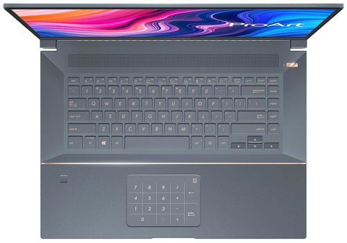 ДизайнНоутбук заключен в корпус серого цвета с вставками «розовое золото» (логотипы компании, кнопка включения, тонкая отделка на верхней панели). Конструкция выполнена из магниево-алюминиевого сплава, крышка — алюминиевая. Поверхности матовые, довольно устойчивые к отпечаткам пальцев, да и пыль на них мало заметна. В центре крышки — небольшой белый логотип бренда, еще один, с указанием серии, находится под экраном. Шарнирный механизм, удерживающий верхнюю и нижнюю части корпуса, представлен двумя небольшими петлями. Они жесткие, потому крепко удерживают крышку, однако и открыть ее получится только двумя руками. Максимальный угол раскрытия дисплея составляет 180 градусов. ![]() Экран NanoEdge получил тонкие рамки, за исключением нижней — она заметно шире. Клавиатура без нампада, выглядит удобной. Рабочая зона отделена от клавиатурного блока ребристой отделкой. С одной стороны, это стильно, с другой — непрактично: текстурированная поверхность быстро собирает мелкие соринки. Интерфейсы разнесены по боковым граням корпуса. ![]() ASUS ProArt StudioBook Pro 17 соответствует стандартам долговечности и надежности MIL-STD-810G. Надо сказать, устройство действительно получилось крепким, разве что совсем немного прогибается крышка, если на нее сильно надавить, но на дисплее это никак не сказывается. Чтобы обновить начинку лэптопа, придется снять несколько винтов, удерживающих нижнюю панель. Процессор и видеокарта распаяны на материнской плате, а вот ОЗУ и накопитель можно обновить. Размеры устройства составляют 382х286х18 мм, вес — 2.4 кг. Дисплей, звук и веб-камераМатовый 17-дюймовый экран ноутбука получил разрешение 1920х1200 пикселей, частоту 60 Гц и соотношение сторон 16:10. Максимальная яркость — 300 кд/м2, коэффициент контрастности тоже невысок — 600:1. В целом, такие показатели подходят для работы в помещении, однако на улице или возле окна читабельность дисплея значительно ниже. ![]() Экран противостоит солнечным бликам, но вместе с тем, матовая панель делает цвета менее яркими, чем они есть на самом деле. Покрытие цветового пространства sRGB отличное — 100%, AdobeRGB и NTSC чуть ниже — 85% и 83%. Матрица IPS способствует отличным углам обзора, речь идет о стабильных 178 градусах, независимо от ракурса. ![]() Динамики с поддержкой ASUS SonicMaster Premium расположены на передней грани корпуса. Звучание хорошее: на средней и максимальной громкости не хрипит, однако ощущается нехватка низких частот. Кроме того, при громкости 50% и выше, начинает вибрировать подладонная зона. На верхней рамке экрана находится веб-камера 720p, окруженная микрофонами. Это стандартная камера, которая встречается во многих современных лэптопах. Она подходит для видеозвонков, однако передает нечеткую и зернистую картинку. Клавиатура и тачпадКлавиатура островного типа заметно утоплена в поверхность и лишена цифрового блока. Кнопки не очень большие, квадратные, с неплотной компоновкой. Ход клавиш — короткий, отдача вполне ощутимая, во время печати они срабатывают тихо. Кнопки управления большие, благодаря чему по ним легко попадать. С правой стороны есть вертикальный ряд функциональных клавиш; чуть ниже — стрелочный блок, с узкими, оттого для многих неудобными, кнопками. Есть подсветка, с тремя уровнями яркости на выбор. Над клавиатурой находится продолговатая клавиша включения, которая подсвечивается все время, пока ноу