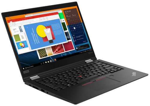 ДизайнНаружность трансформера довольно скромна – всему виной черный матовый цвет и минимальное количество декоративных элементов. С внешней стороны корпуса можно найти только надпись ThinkPad со светящейся точкой над буквой i, тогда как изнутри темное оформление оттеняют детали красного цвета – кнопки трекпоинта и сам манипулятор, а также еще один логотип производителя. ![]() Корпус Lenovo ThinkPad Yoga X390 выполнен из углеводородного волокна с качественным софт-тач напылением. С одной стороны, это практичное решение, а вот с другой – не совсем, так как довольно сложно ухаживать за подобными панелями. Учитывая, что у трансформируемой конструкции приходится часто менять положение в пространстве, – отпечатки пальцев сохраняются на поверхности очень активно. Размеры устройства составляют 310х219х16 мм, вес 1.29 кг. ![]() Дисплей, звук, веб-камера13.3-дюймовый глянцевый дисплей построен на матрице IPS и оснащен сенсорным покрытием, разрешение популярное – 1920х1080 пикселей. Особенности конструкции ноутбука позволяют экрану раскрываться на 360 градусов, так что все обозначенные выше характеристики вполне логичны. Цветовой охват sRGB составляет 100%, но заводская калибровка неидеальна – если будет возможность, лучше заняться идеализацией качества дисплея самостоятельно. Максимальная яркость 268 кд/м2, чувствительность сенсорного покрытия превосходная, как для пальцевого ввода, так и при работе с пером. Кстати, последнее (Lenovo ThinkPad Pen Pro 7) входит в комплект трансформера, оно прячется в корпус и представляет собой автономное решение, заряжаемое во время пребывания в своем разъеме. ![]() Динамиков в устройстве пара, расположены они в нижней части корпуса, почти у боковых граней. По качеству звучания особых претензий нет, акустика довольно громкая, басы отсутствуют, но звук сбалансирован и позволяет комфортно смотреть фильмы без наушников. Также, здесь предусмотрена поддержка Dolby Audio Premium. ![]() Помимо традиционной функции обеспечения картинки в видеомессенджерах, веб-камера на 1.3 Мп оснащена инфракрасным сенсором, который позволяет при поддержке Windows Hello разблокировать трансформер. Сам глазок закрывается физическим затвором, так что пользователь может быть спокоен. ![]() Клавиатура и тачпадЕще одним способом для авторизации в систему является сканер отпечатка пальца. Он расположен правее от тачпада, срабатывает быстро и корректно. Островная клавиатура внешне имеет традиционную форму ноутбуков Lenovo – клавиши черного цвета приятно скруглены снизу, тогда как сверху имеют четко квадратную форму. Раскладка классическая, за исключением положения левого [Ctrl] и [Fn] – они поменяны местами. Стрелочный блок немного уменьшен, но некритично, поэтому пальцами по стрелкам попадать легко. Также здесь есть два уровня светодиодной подсветки, чего целиком и полностью достаточно для работы в темное время суток. ![]() В центре клавиатуры находится трекпоинт, который заменяет функционал мышки. Он работает четко, точно позиционируя курсор, равно как и две физические кнопки, расположенные в верхней части тачпада. Последний имеет средние размеры, поддерживает жесты Windows 10 и обладает превосходной чувствительностью. ПроизводительностьLenovo ThinkPad Yoga X390 (20NN0029RT) поставляется с операционной системой Windows 10 Pro и работает с четырехъядерным процессором поколения Whiskey Lake Intel Core i5-8265U. Тактовые частот