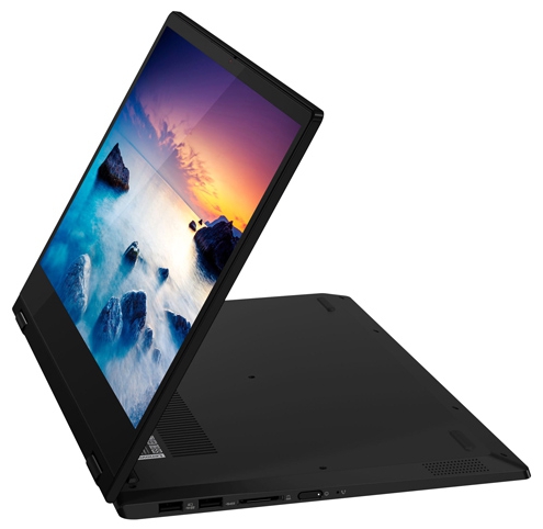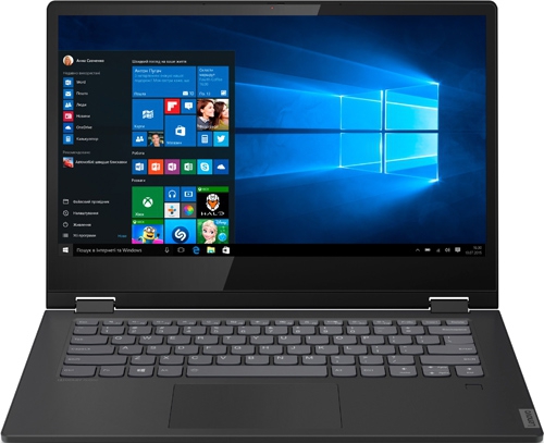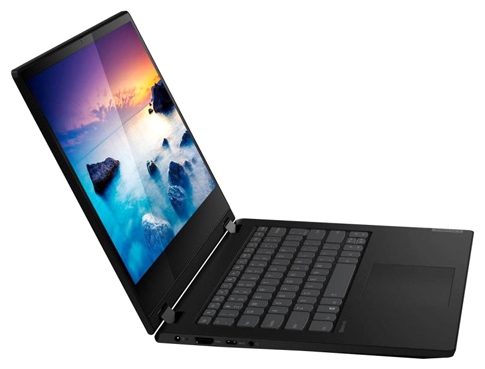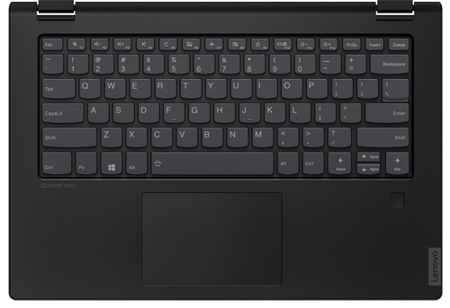 ДизайнНоутбук сделан из пластика, имеющего расцветку Onyx Black. В оформлении черный гармонично сочетается с серым, придавая корпусу сдержанность. Такая цветовая гамма вполне уместна в рабочей обстановке или дома. Размеры Lenovo IdeaPad C340-14 составляют 328x229x18 мм, что не мешает брать его с собой в поездки. Вес 1.65 кг также оптимален для транспортировок, но не слишком комфортен в режиме планшета. Собран девайс неплохо. В месте стыковки деталей не видно зазоров. Попытки скручивания не увенчались успехом, а вот немного прогнуть крышку все же получилось. ![]() Форме конструкции присуща строгость, а дизайну – минимализм. Логотип производителя размещается ближе к краю крышки. Интерьер раскрытого ноутбука мало чем отличается от внешнего оформления. Здесь все аскетично, нет ничего лишнего. Две петли надежно удерживают дисплей, на подладонной площадке располагается сканер отпечатка пальца, устройства ввода, как всегда, продуманы. Более широкую функциональность лэптопу обеспечивает возможность трансформации, например, в консоль или планшет, что позволяет работать в различных режимах, с комфортом просматривать видеоконтент или презентации. ![]() Дисплей, звук, веб-камераЭкран ноутбука обладает диагональю 14 дюймов и разрешением Full HD. Шрифт текста и детализация картинки на таком дисплее оптимальные. Места хватает, чтобы работать с двумя раскрытыми окнами приложений. Покрытие дисплея глянцевое, поэтому цвета в изображении отличаются сочностью. Благодаря IPS-матрице просмотр возможен с широкого ракурса. В числе достоинств также сенсорная поверхность, с помощью которой можно управлять пальцами или стилусом, выполнять различные эскизы и т.п. Уровень яркости экрана невысокий, не больше 220 кд/м2, однако для работы в помещении этого достаточно. ![]() Динамики ноутбука находятся на скосах, ближе к боковым торцам. Из-за этого звук на выходе практически не теряет в громкости. Каждый стереодинамик обладает мощностью 2 Вт, выдает звучание с преобладанием высоких частот, чего достаточно для прослушивания в фоне. Небольшое улучшение при воспроизведении и возможность настроек обеспечивает Dolby Audio. Если захочется на Lenovo IdeaPad C340-14 посмотреть фильм, то лучше подключить наушники. Веб-камера лэптопа с небольшим разрешением 1 Мп способна организовать видеосвязь. Однако не стоит рассчитывать на высокое качество изображения. Ему не хватит четкости и естественной цветопередачи. ![]() Клавиатура и тачпадКлавиатурный блок сделан традиционно островным. Кнопки заметно закруглены внизу, что обеспечивает пальцам дополнительный комфорт. К маркировке претензий нет. Она выполнена четко, поэтому к символам присматриваться не нужно. К плюсам также можно отнести стандартную раскладку, средний ход клавиш и ощутимый момент отдачи, а еще – подсветку. Последняя позволяет печатать в сумерках или полной темноте. Две кнопки стрелочного блока получились немного сжатыми, но не слишком критично, чтобы не суметь к этому привыкнуть за пару раз. ![]() Тачпад в ноутбуке выполнен в виде кликпада. Он в меру просторный, позволяет использовать для позиционирования всю площадь. Вдобавок сенсорное покрытие не препятствует скольжению пальцев. За счет хорошей чувствительности различные жесты, в том числе и мультитач, выполняются корректно и быстро. В нижней части тачпада скрыты две мышиные кнопки, поэтом