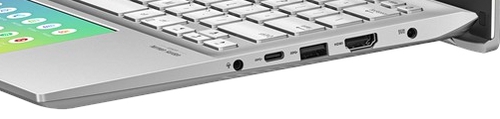 ДизайнНоутбук доступен в трех цветах: «прозрачное серебро», «зеленый мох», розовый, так что и любители спокойных, и ярких оттенков найдут для себя подходящую модель. Крышка девайса сделана из алюминия, остальные детали корпуса — пластиковые, все же это устройство не премиум-класса. Радует, что все панели матовые, и отпечатки пальцев к ним прилипают крайне неохотно. На крышке — небольшая надпись с названием линейки и бренда, еще один логотип находится под экраном. ![]() Шарнирный механизм сделан в виде сплошной петли. Поднять дисплей одной рукой не получится, так как верх неизменно потянет за собой нижнюю часть конструкции. В ноутбуке используется шарнир ErgoLift, благодаря которому раскрытие крышки очень плавное. Кроме того, он приподнимает клавиатуру на 3.5 градуса, обеспечивая тем самым удобное положение рук во время набора текста. Дисплей NanoEdge тоже современный, как и шарнир. У него тонкие рамки (5.3 мм), так что экран занимает аж 88% общей площади. Клавиатура — со стандартной раскладкой, под ней находится довольно большой тачпад, он же ScreenPad. ![]() Интерфейсы равномерно раскиданы по боковым граням корпуса. На дне — четыре большие резиновые ножки для сцепления с поверхностью, несколько маленьких вентиляционных отверстий и пара динамиков. Снять нижнюю панель реально, для этого нужно раскрутить девять винтиков. С точки зрения обновления компонентов, ноутбук много не предложит. Апгрейдить можно лишь SSD-накопитель, а вот оперативная память, увы, распаяна на материнской плате. Напоследок про габариты модели: размеры составляют 322х212х18 мм, вес равен 1.4 кг. Дисплей, звук и веб-камераНоутбук оснащается 14-дюймовой панелью с разрешением Full HD, с плотностью пикселей 157 ppi и соотношением сторон 16:9. Максимальная яркость составляет всего 250 кд/м2 — это довольно мало по современным меркам; минимум 300 кд/м2 — запас яркости, комфортный для работы с экраном на улице. Коэффициент контрастности довольно высокий, и равен 1100:1, а значит, черный и другие цвета отображаются корректно, без ухода в какие-либо оттенки. ![]() Покрытие цветового пространства sRGB низкое — всего 54%, поэтому возможна лишь любительская работа с изображениями. Время отклика — 28 мс, и для серьезных игр этого, конечно, мало; не радует и наличие ШИМ. Матрица IPS, следовательно, углы обзора широкие — доходят до 178 градусов по горизонтали и вертикали. ![]() Два динамика с поддержкой Harman Kardon находятся на днище, направлены не на пользователя, а потому звучат несколько приглушенно. В остальном, со звуком все хорошо: он в меру громкий, сбалансирован по частотам, не хрипит. В ноутбуке используется HD-камера с инфракрасным датчиком. Она подходит для видеоконференций, а также защищает систему от посторонних посягательств. Вместе с Windows Hello камера выполняет аутентификацию по распознаванию лица, чтобы никто не мог прочитать какие-либо данные на устройстве. Клавиатура и тачпадПолноразмерная клавиатура островного типа наделена крупными кнопками квадратной формы. У них неплотная компоновка, так что между клавишами достаточно свободного пространства. Поверхность гладкая, нажимать по кнопкам приятно. У них средний ход — 1.4 мм, довольно ощутимая отдача, руки не устают. Есть подсветка, чтобы комфортно работать при слабом освещении. Единственное, что нас смущает, это расположение и размер некоторых кнопок. Так, стрелочный б