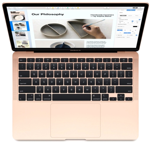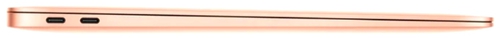 ДизайнНоутбуки MacBook Air славятся малым весом и компактными размерами, новинка не стала исключением: ее вес составляет 1.29 кг, а габариты — 304х212х16 мм. Корпус доступен в трех цветах: золото, серебряный и “космический серый”. Как обычно, лэптоп сделан из цельного куска алюминия, за счет чего он очень прочный. Плюс легкая шероховатость обеспечивает хорошую сцепку поверхности с руками, поэтому ноутбук не выскальзывает. ![]() Шарнирный механизм в меру податливый, так что экран реально открыть одной рукой. Максимальный угол раскрытия составляет примерно 140-150 градусов. Рамки дисплея тонкие, правда, боковые все же заметно уже, чем верхняя и нижняя. Клавиатура крупная, тачпад — тоже большой, но для Apple это нормально. В правом углу клавиатуры находится биометрический сканер в виде небольшой кнопки. ![]() Интерфейсы распределены неравномерно — их всего два, и оба находятся на левой грани корпуса. Качество сборки превосходное, что, опять-таки, отличительная черта всех моделей MacBook. Корпус не люфтит, не трещит, крышка и клавиатура не прогибаются. Дисплей, звук и веб-камераПо части экрана все осталось как и раньше. Это 13.3-дюймовая панель Retina с разрешением 2560х1600 пикселей с плотностью 227 ppi и соотношением сторон 16:10. Максимальный показатель яркости достигает 320 кд/м2, коэффициент контрастности равен 1103:1. Дисплей глянцевый и бликует в солнечную погоду. Тем не менее цветопередача экрана четкая, насыщенная, изображение реалистичное. ![]() Охват цветового пространства sRGB составляет 96%, AdobeRGB — 62%, что неплохо для работы с цветом на любительском или полупрофессиональном уровне. Для профобработки все же лучше подходит серия MacBook Pro. Матрица IPS обеспечивает широкие углы обзора вне зависимости от ракурса. Экран оснащается технологией True Tone, которая делает цвета немного теплее, чем есть на самом деле. Кардинально она их не меняет, однако для глаз такая цветопередача приятнее, да и устают они меньше. В ноутбуке предусмотрена пара стереодинамиков с поддержкой Dolby Atmos. Звук четкий и громкий, отлично сбалансирован по частотам. На максимальной громкости хрипов нет. Что касается вебки, то ее разрешение составляет 720p. Это обычная веб-камера, которая транслирует несколько зернистое и смазанное изображение. Клавиатура и тачпадНожничная клавиатура, используемая Apple ранее, проявила себя не лучшим образом: кнопки часто залипали, внутрь активно забивалась пыль и соринки. В общем, в ноутбуке версии 2020 года механизм butterfly заменили на обычный, ножничный, а клавиатура получила название Magic Keyboard. Ход ее клавиш очень короткий и составляет всего 1 мм, но отдача при этом вполне ощутимая. Нажатие тихое и комфортное. Есть белая подсветка, с которой удобно набирать текст даже ночью. Благодаря датчику освещенности интенсивность яркости подсветки меняется, в зависимости от условий вокруг. Кнопки управления крупные, попадать по ним удобно. Стрелочный блок Т-образный, маленький, но вполне работоспособный. ![]() Тачпад Force Touch — одна из фишек ноутбуков Apple. Он просто-таки огромный, гладкий на ощупь и отзывчивый. В нижней части манипулятора есть встроенные клавиши, при нажатии они издают негромкий клик. ПроизводительностьApple MacBook Air 13 (2020) MWTL2RU/A работает на базе операционной системы macOS. В качестве процессора используется двухъядерный Intel Core i3-1000G4 архитектуры Ice Lake. Он работает на частоте 1.1-3.2 ГГц, а благ