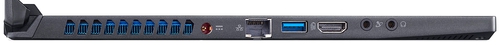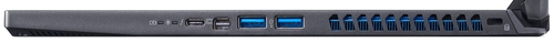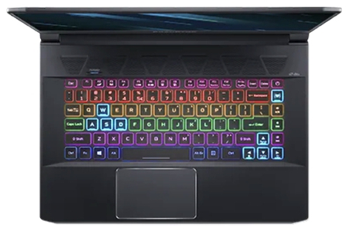 ДизайнКонечно, эстетика внешнего вида ноутбука — штука субъективная, но рискнем предположить, что многим дизайн Acer Predator Triton 500 понравится. Снаружи корпус устройства сделан из гладкого темно-синего алюминия, внутри же это пластик. Сразу минус: алюминиевые поверхности быстро покрываются отпечатками пальцев. Они легко и быстро устраняются, и все же такая особенность присутствует и ее нельзя игнорировать. На крышке — серебристый логотип, который подсвечивается синим цветом. Скошенные углы — маленькая деталь, однако и она вносит свою лепту в то, что девайс выглядит интересно и гармонично. ![]() Шарнирный механизм представлен двумя небольшими петлями, в меру податливыми. Поднимать крышку лучше двумя руками; шарнир крепко фиксирует дисплей в нужном положении. Боковые рамки экрана очень узкие, верхняя — чуть толще, чтобы на ней поместилась веб-камера, а наиболее внушительные размеры у нижней стороны. Клавиатурный блок выглядит довольно компактным, под ним находится большой тачпад, а сверху — воздухозаборники. По бокам корпуса, по соседству с интерфейсами, находятся вентиляционные решетки. ![]() Качество сборки модели хорошее, однако не идеальное — при надавливании прогибается крышка. В остальном проблем нет: все детали на своих местах и хорошо подогнаны, нет люфтов, ноутбук не скрипит и не трещит. Вес девайса составляет 2.1 кг, размеры — 358х255х18 мм. Дисплей, звук и веб-камераНоутбук получил матовую Full HD-панель диагональю 15.6 дюймов и поддержкой NVIDIA G-Sync. Плотность пикселей экрана составляет 141 ppi, соотношение сторон — 16:10. Максимальная яркость дисплея не так уж велика — около 350 кд/м2, коэффициент контрастности равен 1300:1. Покрытия цвета в sRGB и AdobeRGB хороши — 100 и 70%, то есть работать с цветом реально на полупрофессиональном уровне. ![]() Углы обзора широкие благодаря матрице IPS. Время отклика составляет 10.4 мс, это отличный показатель для игр, хоть и не идеальный. Частота дисплея составляет целых 300 Гц, а значит, игровые сцены выглядят максимально четкими, картинка сменяется очень быстро. ШИМ не обнаружена, что особенно важно для пользователей с чувствительными глазами — даже после целого дня за ноутбуком они не устают. ![]() Динамики с ПО объемного звучания DTS: X Ultra выдают приличный звук, без металлических оттенков. Пожалуй, басы немного не дотягивают, но, в целом, звучание громкое и чистое. Если захочется, всегда можно подключить гарнитуру, для этого предусмотрен выход на наушники. HD веб-камера подходит для видеочатов или стриминга, тем не менее картинку она транслирует зернистую и тусклую. Так что если качество изображения для вас в приоритете, придется докупать внешнюю камеру. Клавиатура и тачпадКлавиатурный блок довольно компактный, утопленный в поверхность. Клавиши средних размеров, квадратные, со светлой маркировкой на темном фоне. Имеется настраиваемая для каждой кнопки RGB-подсветка (в приложении Predator Sense), причем подсвечиваются не только символы, но и боковые грани. Производителем предусмотрено пять уровней яркости свечения. Ход короткий, отдача ощутимая, нажатие тихое. Раскладка стандартная, с большими часто нажимаемыми кнопками. Нампада нет, вместо него — столбец с клавишами управления мультимедиа и громкостью. ![]() Есть несколько потенциально неудобных для пользователей моментов. Так, кнопка [CapsLock] не имеет индикатора, что может стать п