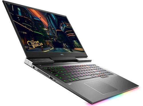ДизайнДля изготовления корпуса ноутбука используются пластик и алюминий. Конструкция довольно прочная, крышка не деформируется под давлением, а клавиатурная подложка не прогибается при активной печати. Дизайн, вероятно, на любителя, нам он нравится. Крышку украшает небольшой логотип, однако на черном фоне он выделяется хорошо. Еще один, меньшего размера, находится на нижней грани экрана. На передней панели корпуса находится полоса RGB, которая в процессе работы ноутбука меняет цвет. ![]() Крышку устройства можно поднять одной рукой, то есть шарнир довольно податливый. Он представляет собой монопетлю, более высокую, чем обычно, так что кажется, будто экран находится на пьедестале. По периметру дисплея — три тонкие рамки, кроме широкой нижней. Клавиатура утоплена в поверхность, она оснащается цифровым блоком. ![]() На днище вынесены вентиляционные решетки, а также динамики. Также здесь пара резиновых накладок, чтобы девайс не скользил по столу или другой поверхности. Крышка несложно снимается, для этого нужно избавиться от 8 винтов крестообразной отверткой. Апгрейду подлежат ОЗУ, а также можно добавить еще один SSD. Что касается размеров устройства, они составляют 398х290х21 мм, вес же довольно большой — 3.3 кг. Дисплей, звук и веб-камераВ ноутбуке установлен 17.3-дюймовый матовый экран с разрешением Full HD и частотой обновления 144 Гц. Соотношение сторон — 16:9, плотность пикселей равна 127 ppi. Запас яркости довольно скромный — 300 кд/м2, для работы в помещении этого достаточно, а для использования на открытом пространстве — маловато. Коэффициент контрастности хорош — 1300:1, это значит, что цвета выглядят достоверно, а черный не уходит в серый. ![]() Время отклика составляет 10 мс и в сочетании с частотой 144 Гц дает быструю и в то же время плавную смену кадров во время игрового процесса. ШИМ отсутствует, поэтому даже чувствительные глаза не должны уставать после многочасового сидения перед ноутбуком. Матрица IPS обеспечивает широкие углы обзора, независимо от того, под каким ракурсом смотреть на дисплей. Динамики с поддержкой технологии Nahimic выдают не очень громкий, но сбалансированный по частотам звук. Разрешение веб-камеры составляет 1 Мп, чего достаточно для эпизодических видеоконференций, а также для стриминга видео. Клавиатура и тачпадКлавиатура островного типа, с довольно плотной компоновкой клавиш. Они гладкие на ощупь, срабатывают с тихим щелчком. Кнопки имеют комфортный ход и ощутимую обратную связь. Клавиатура получила четырехзонную RGB-подсветку, которую можно настраивать по своему вкусу. Часто используемые клавиши, такие как [Enter], [Shift], [CapsLock] довольно крупные, по ним легко попадать. Стрелки держатся особняком, они тоже вполне удобные для работы. В целом, клавиатура производит хорошее впечатление, она продумана как для игр, так и для набора текста. Над клавиатурой, с правой стороны, находится кнопка включения ноутбука. Слева — клавиша, активирующая технологию Game Shift. Она запускает вентиляторы на максимум, дабы поддерживать нормальную температуру во время серьезных игровых баталий. ![]() Тачпад заметно сдвинут влево, у него четкие границы и приятная на ощупь поверхность. Конечно, для игр манипулятор не годится, но, например, для веб-серфинга — очень даже. ПроизводительностьDell G7 17 7700 (G717-2512) работает на базе Windows 10 Home 64-bit. В качестве процессора использ