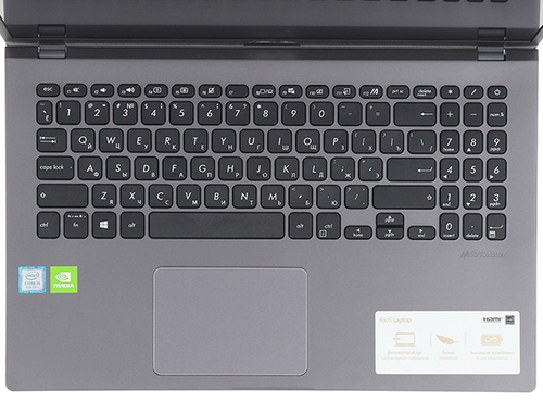 ДизайнНеудивительно, что ASUS VivoBook R521FL получил целиком и полностью пластиковый корпус – как минимум, к этому следует быть готовым, учитывая стоимость устройства. Да и сам материал исполнения среднего качества, в области дисплея он заметно прогибается, даже при несильном давлении. Но стоить отдать должное выбранному цвету оформления – серый выгоден с точки зрения ухода, так как отпечатки пальцев видны плохо. ![]() Из декоративных элементов можно отметить несколько хорошо видных логотипов производителя – на крышке с внешней стороны и дисплейной рамке в нижней части. Максимальный угол раскрытия корпуса лэптопа составляет 135 градусов, его довольно просто открыть одной рукой. Будем надеяться, что это не станет причиной расшатанности крышки со временем эксплуатации. Габариты устройства при весе 1.9 кг составляют 360х229х23.5 мм. Дисплей, звук, веб-камера15.6-дюймовый матовый дисплей ASUS VivoBook R521FL вполне комфортен для досуга и работы, так как даже при ярком солнечном свете блики и отражения не будут сильно докучать. Разрешение составляет 1920х1080 пикселей – оптимальный вариант, а вот TN-матрица объясняет невысокий ценник лэптопа. В результате мы имеем неширокие углы обзора, средний показатель максимальной яркости, достаточную контрастность и четкое изображение на удобной по размеру панели. ![]() Акустика, представленная в ноутбуке, реализована с помощью двух стереодинамиков. Качество звука отличное, он не искажается при изменении громкости, отличается четкостью. Есть поддержка технологии SonicMaster. Что до веб-камеры, то ее разрешение минимальное – всего 0.3 Мп, соответственно, рассчитывать на хорошую картинку при видеосвязи не приходится. ![]() Клавиатура и тачпадОстровная клавиатура лэптопа хорошо адаптирована для нужд пользователя. Здесь предусмотрен дополнительный цифровой блок, четкая контрастная маркировка и стандартная раскладка. Нажимаются клавиши с минимальным усилием, практически бесшумно. К сожалению, подсветка не предусмотрена, хотя очень актуальна при работе в темное время суток. ![]() Кликпад демонстрирует хорошую степень чувствительности и приятную на ощупь поверхность. Во время работы никаких проблем с коррекцией или скоростью срабатывания курсора выявлено не было, поэтому можно смело говорить о хорошем уровне манипулятора. ПроизводительностьASUS VivoBook R521FL-BQ241T (90NB0N11-M03160) поставляется с 64-разрядной операционной системой Windows 10 Home. За производительность отвечает двухъядерный процессор Intel Core i3-8145U с частотой 2.1-3.9 ГГц и 4 МБ кэша третьего уровня. Это энергоэффективный чип поколения Whiskey Lake-U с TDP 15 Вт, обладающий неплохим уровнем производительности, который может конкурировать даже с CPU Core i7 генерации Kaby Lake. Тем более для Core i3-8145U используется уже более современная интегрированная графика Intel UHD Graphics 620 с частотой до 1000 МГц и 24 юнитами. Если ее мощности будет недостаточно, комплектация ASUS VivoBook R521FL предусматривает наличие дискретной составляющей – NVIDIA GeForce MX250 с 2 ГБ видеопамяти GDDR5. Адаптер обладает умеренной производительностью, поэтому пойдут игры только более старые и менее требовательные. К примеру, при родном для лэптопа разрешении и средних настройках FIFA 19 2018 пойдет с 45 fps, World of Tanks enCore 2018 – с 50 fps. Также комплектация ноутбука предусматривает наличие 6 ГБ ОЗУ (12 ГБ максимально) стандарта DDR4-2400 МГц и HDD на 1 ТБ с частотой вращения шпинделя 54