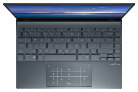 ДизайнПервого взгляда на ZenBook UX325JA достаточно, чтобы заметить сдержанность, элегантность и определенный стиль в его внешности. Корпус устройства спокойного серого цвета (Pine Grey), в любой обстановке такое решение смотрится оптимально. Есть и другой вариант: лиловый (Lilac Mist). На крышке модели можно увидеть знакомые концентрические круги, среди которых выделяется неизменный логотип компании. В отличие от многих моделей линейки круги находятся не в центре, а смещены в сторону. Рабочая зона выглядит предельно лаконично. Дисплей окружают узкие рамки, клавиатура занимает всю отведенную ширину корпуса, в зоне тачпада всегда можно активировать функцию Number Pad, получив дополнительный цифровой блок. Если необходим доступ к внутренним компонентам, придется снимать всю нижнюю панель. ![]() Несмотря на гладкое покрытие ASUS ZenBook 13 UX325JA не скользит в руках. Кстати, собран он очень хорошо: отсутствуют люфт деталей и зазоры, корпус не скрипит и обладает неплохой стойкостью к скручиванию и надавливанию. Специальный механизм ErgoLift позволяет немного приподнимать корпус над столом, чтобы обеспечивать оптимальный наклон во время печати, а также циркуляцию воздуха и лучшее звучание. Сам дисплей удерживается крепко, не расшатывается. Открыть ноутбук получается одной рукой. Важно, что поверхности сделаны прочными, это упрощает ежедневную эксплуатацию, особенно если брать девайс в командировки. При этом использование алюминия дало возможность сделать ноутбук легче. Он весит 1.1 кг. Благодаря размерам 302х203х14 мм лэптоп вмещается в небольшой рюкзак или сумку. Вдобавок его можно переносить в чехле, который идет в комплекте поставки. ![]() Дисплей, звук, веб-камера13.3-дюймовая IPS-панель обладает разрешением 1920х1080 пикселей, что комфортно для различных сценариев работы. Экран матовый, препятствует бликам, но отображает недостаточно сочные цвета. Хотя сама цветопередача устроит многих пользователей. Также дисплей порадует хорошей обзорностью и детализацией, цветовым спектром в sRGB порядка 95%. Наряду с этим показатели яркости и контрастности можно считать усредненными, они не превышают 300 кд/м2 и 700:1 соответственно. А вот мерцания панели избежать не удалось, что сразу скажется на чувствительных глазах. В целом, данный дисплей подойдет для повседневных задач: работы с текстами, таблицами, фоторедакторами, браузером. ![]() Акустика в ноутбуке имеет поддержку ASUS SonicMaster и сертификацию Harman Kardon, но, по большому счету, она сильно не отличается от многих других моделей. Стереодинамики разнесены по сторонам, сосредоточены на днище, ближе к боковым торцам. За счет этого громкость аудио частично теряется. Самому качеству звучания не хватает басов, глубины, и эта проблема решается подключением наушников или внешних колонок. В то же время с четкостью акустической системы – все в порядке. Веб-камера в ноутбуке оснащается инфракрасными датчиками и имеет небольшое разрешение 1 Мп. Качество снимков не на высоте, они не в состоянии передать реалистичные цвета или четкость деталей. В то же время с организацией видеоконференций или с распознаванием лица пользователя для разблокировки входа в систему камера справляется. ![]() Клавиатура и тачпадКлавиатурный блок удобен в работе даже при том, что его плоские кнопки не особо большие. Нажимать клавиши комфортно, они не клацают, обеспечивают н