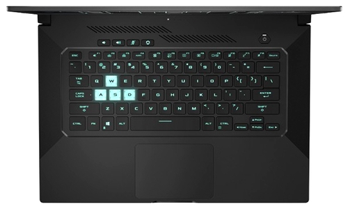 ДизайнКрышка новинки выполнена из алюминия, остальные части корпуса — пластиковые. Производитель предлагает два цветовых решения на выбор: белое (Moonlight White) и серое (Eclipse Gray). Оба варианта интересные, при этом оба с нюансами. Так, белый цвет более практичен, так как на нем слабо заметны пыль и отпечатки пальцев. С другой стороны, яркая бирюзовая подсветка клавиатуры сливается с белыми кнопками и светлой маркировкой, поэтому различать буквы довольно проблематично. ![]() Весь левый край крышки занимает большой логотип TUF. Кому-то понравится, минималистам, вероятно, нет, но это вкусовщина. Шарнирный механизм здесь в виде двух небольших петель, довольно крепких. Крышку можно поднять одной рукой; максимальный угол раскрытия — 140 градусов. Дисплей окружают три тонкие рамки и заметно более толстая нижняя. Веб-камеры в ноутбуке нет, и при том, что многие пользуются ноутбуками, сидя в изоляции, а потому часто созваниваются по сети, такая логика производителя непонятна. Клавиатура довольно компактная, без нампада. Интерфейсы распределены по боковым граням корпуса. ![]() Ноутбук реально апгрейдить, добавив до 32 ГБ ОЗУ и дополнительный SSD-накопитель; для этого придется избавиться от 15 винтиков. Качество сборки устройства достойное: ни крышка, ни клавиатурная подложка не прогибаются при нажатии, все детали прочно закреплены и находятся на своих местах. ASUS TUF Dash F15 получился легким и компактным: его вес составляет 2 кг, а размеры — 360х252х20 мм. Дисплей и звукВ ноутбуке установлен 15.6-дюймовый IPS-экран Full HD с частотой обновления 240 Гц и сторонами 16:9. Максимальная яркость составляет 350 кд/м2, коэффициент контрастности равен 1100:1, а покрытие sRGB — 100%. Вкупе эти показатели позволяют получить четкую, насыщенную, реалистичную картинку. ШИМ отсутствует, так что глаза не будут болеть даже если провести за ноутбуком целый рабочий день. Панель матовая, можно работать возле окна и не бояться солнечных бликов и теней. ![]() Пара стереодинамиков с технологией DTS находится на днище, ближе к боковым граням. Звук громкий, легко заполняет комнату средних размеров. С басами есть проблемы, но если слушать музыку через наушники, то звучание ощутимо лучше. В целом, для игр и видео возможностей динамиков достаточно. Клавиатура и тачпадКлавиатура островного типа, заметно утопленная в поверхность. Кнопки квадратные, комфортного размера, скомпонованы не очень плотно. Маркировка светлая, хорошо заметная на черном фоне. Подсветка бирюзовая, глаза не слепит. Если ноутбук подключен к сети, подсветка не выключается автоматически, только вручную. Зато, когда зарядка не происходит, кнопки перестают подсвечиваться спустя несколько секунд бездействия. И, соответственно, загораются, стоит начать что-то печатать. ![]() Кнопки WASD прозрачные, что очень выручает во время игр. У клавиш средний ход и четкая отдача, набирать текст удобно. Часто используемые кнопки, такие как [Enter], [Shift], [CapsLock] — большие, зато стрелочный блок уж очень миниатюрен, попадать по нему нелегко. Над клавиатурой находится кнопка включения устройства (справа), а также клавиши для управления звуком/микрофоном и запуска Armory Create. Тачпад пластиковый, гладкий на ощупь. Он поддерживает мультитач-жесты, быстро выполняет команды. Однако при нажатии панель слегка дребезжит, отчего производит не лучшее впечатление. ПроизводительностьASUS TUF Da