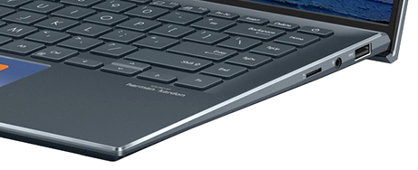 ДизайнНоутбук выполнен из магниевого сплава, который отвечает за прочность и компактность корпуса. Вариантов цвета устройства два: серый с зеленцой (Pine Grey) и нежный лиловый (Lilac Mist), оба нестандартные и в то же время универсальные и уместные в любой обстановке. По концентрическим кругам на крышке нетрудно понять, что новинка принадлежит линейке ZenBook. Вообще, глядя на модель, на ум приходит одно слово — стильно! Красивый дизайн дополняют компактные габариты устройства (399х199х18 мм), а также маленький вес (1.19 кг). ![]() В центре крышки — не очень большой, но хорошо заметный логотип бренда, больше никаких украшений нет. В ноутбуке используется шарнир ErgoLift, популярный нынче. Принцип его работы заключается в том, чтобы приподнимать нижнюю часть корпуса, когда открывается крышка лэптопа. Благодаря этим нескольким градусам над поверхностью тепло лучше циркулирует, а ноутбук, соответственно, меньше греется. Кстати, шарнир довольно податливый — крышку можно поднять даже одной рукой; при этом дисплей хорошо удерживается в заданном положении. ![]() В последнее время для линейки ZenBook стали нормой решетки для вывода тепла, помещенные возле шарнира. Это означает, что горячий воздух выходит прямиком на экран и насколько это безопасно в долгосрочной перспективе — пока неясно. Еще одна неприятная новость — оперативная память распаяна, поэтому обновить ее в будущем нереально. Теперь о хорошем: качество сборки устройства отличное, при повседневном использовании корпус не гнется, не трещит и не скрипит. Дисплей, звук и веб-камераНоутбук оснащен тонкорамочным экраном NanoEdge диагональю 14 дюймов. Разрешение — 1920х1080 пикселей, соотношение сторон составляет 16:9. Частота обновления 60 Гц считается скромной, но для неигрового устройства ее достаточно. Запаса яркости 400 кд/м2 хватает для комфортной работы не только в помещении, но и на открытом пространстве. Панель матовая, так что солнечные блики и тени ей не страшны. ![]() Коэффициент контрастности составляет 1700:1, это отличный показатель, благодаря которому цвета выглядят насыщенными, живыми, реалистичными. Соответствие цветовому покрытию sRGB равно 100%, так что можно работать с изображениями на профессиональном уровне. ШИМ отсутствует, что важно для обладателей чувствительных глаз. ![]() Пара динамиков с поддержкой Harman/Kardon выдают громкий и четкий звук. Слушать музыку комфортно, смотреть фильмы — тоже. Лэптоп наделен веб-камерой со стандартным разрешением 720p, которая подходит для периодических видеозвонков. Вебку окружают ИК-датчики, выполняющие аутентификацию пользователя без ввода пароля (функция Windows Hello). Это очень быстро и удобно, к тому же датчики корректно справляются со своей работой даже в условиях плохого освещения. Клавиатура и тачпадКлавиатура полноразмерная, островного типа, с неплотной компоновкой клавиш. Ход кнопок комфортный (1.4 мм), отдача ощутимая, набирать текст легко. Маркировка серая, отлично заметна на темном фоне. Привычного нампада здесь нет, но есть сенсорный NumberPad, встроенный в тачпад. Его легко активировать маленькой кнопочкой, в верхнем углу манипулятора. В клавиатуре предусмотрена подсветка, так что удобно набирать текст даже в условиях кромешной темноты вокруг. ![]() Интересно обстоит дело с тачпадом. С одной стороны, это приятная на ощупь стеклянная сенсорная площадка, которая быстро р