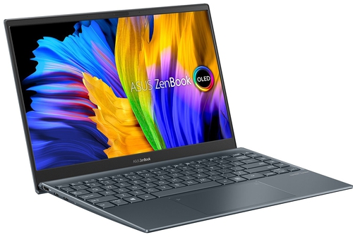 ДизайнКак внешне, так и в отдельных деталях – ASUS ZenBook 13 OLED UM325UA изготовлен из легкого и прочного металла. На крышке ультрабука явно просматривается уже знакомый текстурированный рисунок, радиальными кругами расходящийся от логотипа производителя. Основной цвет оформления темно-серый (Pine Grey) – практичное и благородное решение, которое неплохо скрывает отпечатки пальцев. ![]() Габариты Зенбука составляют 304х203х13.9 мм, вес всего 1.14 кг. Его конструкция предполагает наличие специального шарнира ErgoLift, который приподнимает нижнюю панель над столом, а также позволяет попадать большему количеству воздуха в вентиляционные отверстия для охлаждения. Вместе с тем, это ограничивает угол раскрытия дисплея – он может открываться максимум на 155 градусов. И не стоит забывать, что корпус ASUS ZenBook 13 OLED UM325UA соответствует стандарту MIL-STD-810H, что гарантирует надежность и прочность. ![]() Дисплей, звук, веб-камераСтоит сразу сказать, что данный ультрабук доступен только в одной комплектации касательно 13.3-дюймового дисплея – OLED-панель от Samsung с разрешением 1920х1080 пикселей и соотношением сторон 16:9. Углы обзора просто идеальные, максимальная яркость достигает 420 кд/м2, покрытие DCI-P3 100%. Но стоит учитывать, что OLED-матрица глянцевая, и она будет беспощадно отражать все вокруг. Также есть один момент, который нужно учитывать: при уровне яркости, ниже 100 кд/м2, данная панель демонстрирует низкую ШИМ, что может быть вредным для глаз. В остальном, это превосходный пример того, как технологии растут и развиваются, расширяя возможности человека еще больше. ![]() Веб-камера на 1 Мп расположена в верхней части тонкой дисплейной рамки, в компании инфракрасного датчика для реализации функции Windows Hello. Уровень ее работы средний, для видеозвонков должно быть достаточно. ![]() Два динамика Harman Kardon расположены вдоль боковых поверхностей корпуса. Они звучат очень громко, а также генерируют прекрасный звук, балансирующий все частоты – от низких до высоких. Клавиатура и тачпадОстровная клавиатура заняла половину рабочей поверхности, оставив вторую часть крупногабаритному тачпаду. Здесь комфортная компоновка клавиш, есть светодиодная подсветка и классическая раскладка. Работать с такой клавиатурой очень удобно: оптимальная обратная связь и неглубокий ход делают процесс набора текста максимально беспроблемным. Единственное, что может вызвать дискомфорт, – это миниатюрный стрелочный блок. ![]() Как уже упоминалось, кликпад в ASUS ZenBook 13 OLED UM325UA очень крупный, продолговатой формы, с поддержкой NumberPad 2.0, который является визуализацией NumPad. Запустить цифровое позиционирование можно при зажимании правого верхнего угла панели. Сенсорное покрытие манипулятора имеет изумительную чувствительность, действия выполняются молниеносно. ПроизводительностьASUS ZenBook 13 OLED UM325UA-KG047T поставляется с операционной системой Windows 10 Home и работает с процессором AMD Ryzen 5 5500U. Напомним, это чип нового поколения Lucienne с шестью ядрами и частотами 2.1-4 ГГц, с поддержкой SMT/Hyper-Threading и Turbo, изготовленный по нормам 7-нм техпроцесса. Это быстрый процессор, разработанный специально для ультрабуков, с уровнем потребляемой мощности 25 Вт и 8 МБ кэша третьего уровня, который работает с интегрированной видеокартой AMD Radeon RX Vega 7. Последняя демонстрирует высокие частоты до 1800 МГц и оснащена 448 унифицированными шейдерами. Объем оператив