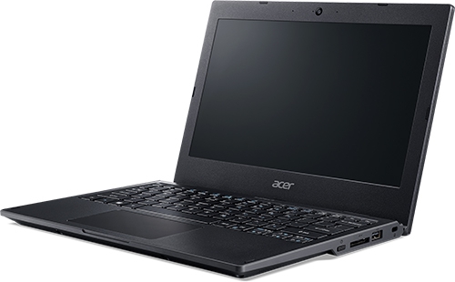 ДизайнБюджетный ноутбук Acer TravelMate B1 TMB118 получил совершенно непритязательный внешний вид. Шершавый пластик черного цвета использован повсеместно по всей площади корпуса, на крышке расположены логотип производителя и светодиодный индикатор активности. Что интересно, хоть ноутбук и имеет скромный статус, качество сборки и использованных материалов очень хорошее. Шарнирный механизм крепко держит верхнюю часть, раскрывающуюся на 180 градусов, а сам корпус крепкий. Тем не менее Acer TravelMate B1 TMB118 есть за что пожурить: он тяжел (1.53 кг), несмотря на компактный форм-фактор и габариты 291хх211х22.3 мм. ![]() Дисплей, звук, веб-камера11.6-дюймовый дисплей демонстрирует самое что ни есть бюджетное разрешение 1366х768 пикселей. Использование матрицы TN стало причиной очень узких углов обзора, но зато есть матовое покрытие, наличие которого оправдано при работе на солнце. Максимальный уровень яркости составляет 260 кд/м2, цветопередача вполне естественна, по крайней мере, смотреть фильмы вполне комфортно. ![]() Веб-камера 720р имеет необходимый минимум для обеспечения общения в видео мессенджерах. В темное время суток изображение будет менее различимым, но в целом, все нормально. ![]() Пара динамиков звучит довольно тихо – распространенное дело для ноутбуков. Качество акустики низкое, звук совершенно плоский и полностью лишен басов. Как и обычно, лучше сразу подключать наушники, чтобы с удовольствием послушать музыку или посмотреть кино. Клавиатура и тачпадОстровная клавиатура компактно расположилась на довольно прочной подложке. Здесь нет подсветки, что совершенно характерно для бюджетной модели, но работать вполне комфортно. Клавиши имеют четкую обратную связь и средний ход, стандартная раскладка выполнена белым цветом на черном фоне, хорошо контрастируя. Стрелочный блок привычно уменьшен, что может стать причиной неоднократных случайных нажатий. ![]() Тачпад крупный относительно всей рабочей площадки, обладает неравномерной чувствительностью – по периметру манипулятора задачи выполняются с заметной задержкой. Есть поддержка жестов мультитач, к примеру, масштабирования или двойного клика. ПроизводительностьНоутбук Acer TravelMate B1 TMB118-M-C6UT поставляется с операционной системой Windows 10 Home, но сам производитель рекомендует перейти на Windows 10 Pro для более продуктивной работы. Лэптоп оснащен бюджетным четырехъядерным чипом Intel Celeron N4120 с частотой 1.1-2.6 ГГц. Он изготовлен по нормам 14-нм техпроцесса, лишен поддержки технологии гиперпоточности, демонстрирует 4-мегабайтную кэш-память второго уровня и минимальный TDP на 6 Вт. Это малопроизводительный процессор, обладающий небольшим рабочим потенциалом, рассчитанным исключительно на задачи нетребовательного характера. То же самое касается и интегрированной видеокарты Intel UHD Graphics 600 с максимальной частотой 700 МГц и 18 EUs. Она позволит поиграть в простейшие игры, а также без проблем смотреть YouTube-ролики. Оперативная память стандарта DDR4-2400 МГц предлагает лишь 4 ГБ, в качестве накопителя использован eMMC, объемом 64 ГБ. Порты и коммуникацииAcer TravelMate B1 TMB118 получил достаточно количество портов, которые равномерно распределились по боковым торцам корпуса. Слева находятся гнездо для зарядного устройства, RJ-45, HDMI, USB 3.0 и комбинированный аудио. ![]() Справа можно найти слот для замка Кенсингтона, USB 2.0, кардридер SD и кнопку включения. ![]() Бесп
