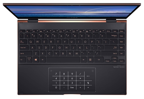 ДизайнКонструкция выполнена из алюминиевого сплава, она крепкая, неплохо сопротивляется давлению, не прогибается и не скрипит. Люфта и зазоров нет, а шарнирный механизм ErgoLift достаточно прочный, позволяет приподнимать корпус над столом, обеспечивая лучшую вентиляцию, откидывать дисплей до 360 градусов. На днище устройства можно увидеть специальные опорные ножки и относительно крупные вентиляционные решетки. Важно, что ASUS ZenBook Flip S UX371EA удобно использовать как в режиме ноутбука, так и палатки, планшета. ![]() Оформлен девайс очень стильно, элегантно, имиджево. Логотип находится не в центре крышки, а ближе к краю. Там же располагаются узнаваемые концентрические круги. Интересный нефритово-черный цвет гармонично сочетается с акцентными полосками по краям торцов и над клавиатурой. За счет сужения корпус кажется тоньше, чем есть на самом деле. Хотя габариты, вес девайса и так подходящие для частых перемещений: 305х211х14 мм и 1.2 кг соответственно. Важно, что лэптоп соответствует военному стандарту MIL-STD-810G, поэтому конструкция устойчива к ежедневной эксплуатации, выдерживает перепады температур, вибрации. Дисплей, звук, веб-камераВ ASUS ZenBook Flip S UX371EA установлен OLED-дисплей с высоким разрешением 3840х2160 пикселей. К качеству экрана NanoEdge претензий нет. Независимо от ракурса просмотра, режима использования (планшет или ноутбук) изображение не теряет в цвете, яркости, четкости. При 13.3-дюймовой диагонали и 4K-разрешении картинка получается детализированной. ![]() Среди других плюсов дисплея: однородная подсветка, хороший запас яркости (около 400 кд/м2), чувствительное сенсорное покрытие, поддерживающее работу со стилусом, а также точная цветопередача и повышенная контрастность. Вдобавок узкие экранные рамки немного увеличивают площадь просмотра. В итоге, дисплей оптимально подойдет и для рабочих задач, и для просмотра медиаконтента, и для редактирования изображений. ![]() Два стереодинамика (с сертификацией Harman/Kardon) выводят качественное звучание. Его приятно слушать не только в фоне. Акустика имеет поддержку фирменной технологии ASUS SonicMaster, которая добавляет звуку пространственности. Что касается веб-камеры с разрешением HD, то она способна организовать видеосвязь. При этом по качеству картинка неплохая даже в условиях недостаточного освещения. Благодаря поддержке технологии Windows Hello можно получить доступ к файлам на ноутбуке только после аутентификации. ![]() Клавиатура и тачпадКлавиатурный блок занимает всю ширину рабочей площадки. Он островной, очень эргономичный, немного углублен относительно подложки. Все клавиши обладают плоской поверхностью, нажимаются легко, с увеличенным ходом, при этом немного пружинят и практически не клацают. Конечно, размеры кнопок не слишком крупные, особенно стрелочный блок, тем не менее пользоваться клавиатурой удобно, даже при длительной печати пальцы не устают. Если работать приходится допоздна, всегда можно активировать подсветку. Что касается кнопки включения ноутбука, то она располагается не в пределах клавиатурного блока, а на одном из боковых торцов корпуса. ![]() Тачпад девайса чувствительный, довольно крупный за счет того, что заметно вытянут. С его помощью можно управлять курсором, вводить числовые данные, активируя сенсорный цифровой блок. По стеклянному покрытию манипулятора хорошо скользят пальцы, не зал