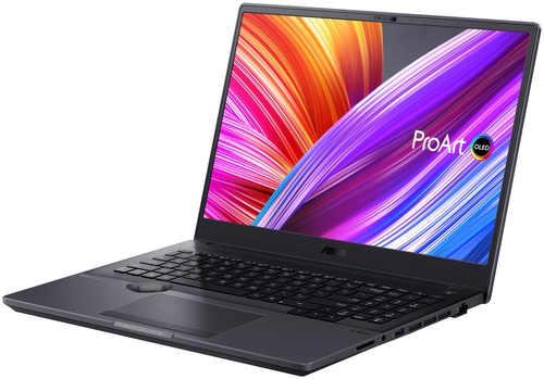 ДизайнНоутбук заключен в корпус черного цвета, который производитель назвал Star Black. Внешний вид — без ярких и кричащих деталей, наоборот, здесь царит полный минимализм. На крышке — красивый глянцевый логотип ProArt, еще одна надпись, на этот раз ASUS, помещена на нижнюю грань экрана. Корпус полностью из алюминиевого сплава, крепкий и долговечный. Он прошел ряд испытаний и соответствует военному стандарту MIL-STD 810H, а значит, не боится падений, вибраций, температурных перепадов и прочих неприятностей. Конструкция девайса устойчивая, плюс ноутбук отлично собран. ![]() 16-дюймовый дисплей окружают тоненькие боковые рамки, а на верхнюю вынесена веб-камера. Клавиатура с нампадом, заметно утоплена в поверхность, выглядит прочной и удобной. Под ней — прямоугольный тачпад с физическими кнопками и специальный контроллер ASUS Dial, который пригодится, например, для работы в Photoshop. Что касается компактности устройства: его размеры составляют 362х264х20 мм, вес равен 2.4 кг, так что теоретически девайс можно брать с собой куда угодно. Дисплей, звук и веб-камераВ ноутбуке используется 16-дюймовый OLED-экран с разрешением 3840х2400 пикселей и соотношением сторон 16:10. Максимальная яркость составляет 400 кд/м2, и для OLED-панели это немало. Цвета на дисплее выглядят невероятно сочно и насыщенно, с глубоким черным, достоверными оттенками. Смотреть фильмы, редактировать фото или видео доставляет огромное удовольствие. Экран проверен Pantone, его цветопередача максимально точная. Дисплей глянцевый, поэтому в солнечную погоду под прямыми лучами не рекомендуем с ним работать — бликов не избежать. ![]() В устройстве два динамика Harman Kardon, и звучат они нормально, хоть и без вау-эффекта. Тем не менее звук чистый и достаточно громкий. В целом, слушать музыку и смотреть видео — вполне комфортно. Разрешение веб-камеры составляет 720p, хоть в устройстве премиум-класса мы ожидали и получше, например, 1080p. Картинка выглядит тусклой и нечеткой, но для периодических видеозвонков и такая вебка сгодится. Кстати, если захочется от всех и всего спрятаться — используйте ползунок, чтобы закрыть объектив камеры. Клавиатура и тачпадКлавиатура островного типа, раскладка клавиш стандартная, поэтому набирать текст комфортно с первого же дня. Ход кнопок средний (1.4 мм), отдача четкая, хорошо ощутимая. Все часто нажимаемые клавиши большие, по ним удобно попадать. Стрелки полноразмерные, вдобавок расположены чуть ниже основного блока — это удобно. Есть нампад, который пригодится всем, кто часто имеет дело с цифрами. Клавиатура с подсветкой, которая не слепит и здорово выручает в темноте, когда нужно набрать текст. Над клавиатурным блоком находится кнопка включения устройства со встроенным биометрическим датчиком. ![]() Тачпад большой и покрыт стеклом, отчего пальцы по нему скользят легко и не залипают. Сенсорная панель отзывчивая и быстро реагирует на касания. Она поддерживает популярные мультитач-жесты, вроде масштабирования или смахивания тремя пальцами для смены окон. Конечно, отдельно стоит упомянуть контроллер ASUS Dial. По сути, это круглая кнопка с плавным вращением и щелкающим фиксатором. У нее текстурированный внешний край, благодаря чему удобно захватывать и вращать одним пальцем. Использовать контроллер можно, например, для изменения звука или яркости экрана. Также он пригодится в работе дизайнеров, в