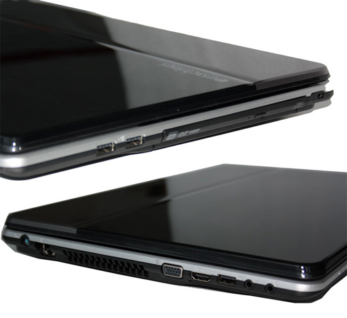 ДизайнКорпус ноутбука Acer eMachines G730G изготовлен из пластика черного цвета. На поверхности он глянцевый, а внутри на рабочей панели – матовый. На крышке, следовательно, следы пальцев будут видны при малейшем прикосновении, а на зоне для запястий – частично скроются. Крышка заметно прогибается, особенно по центру. ![]() Кроме черного цвета дизайнеры использовали серебристый фон на внутренней части в области для запястий. С таким решением контрастно выделяется черная клавиатура. ![]() В целом, о качестве сборки можно сказать, что корпус собран плотно, ничего не скрипит. ДисплейВ ноутбук Acer eMachines G730G устанавливается широкоформатный дисплей диагональю 17,3 дюйма. В жидкокристаллическом экране используется технология светодиодной подсветки, позволяющая улучшить уровень яркости. Кстати, контрастность тоже хорошая, а цветопередача могла бы быть и получше. ![]() Глянцевая матрица WXGA+ с разрешающей способностью 1600х900 точек обеспечит комфортную работу с приложениями и отличный просмотр кинофильмов в компании друзей. Установленная веб-камера с разрешением 1,3 Мп позволит получить хорошее изображение. С данной видеокамерой можно легко организовать общение по Skype, провести конференцию в чате и многое другое. Клавиатура и тачпадНа внутренней панели находится полноразмерная матовая клавиатура с раскладкой QWERTY. Все клавиши крупные, расположены традиционно, так что неудобств в переходе с компьютерной клавиатуры на устройство ввода ноутбука не будет. ![]() На кнопках русифицированной клавиатуры имеется специальная маркировка в виде наклеек серого цвета. Символы латиницы и кириллицы будут сливаться, что скажется на наборе текста в целом. Для удобства в работе предусмотрен и отдельный цифровой блок кнопок. Под клавиатурой располагается сенсорный манипулятор с гладкой утопленной поверхностью. С помощью тачпада можно выполнять вертикальный скроллинг. Процессор и комплектацияВ комплект входит предустановленная 64-разрядная операционная система Microsoft Windows 7 Home Basic. Основой ноутбука Acer eMachines G730G-373G50Miks является двухъядерный центральный процессор Core i3 370M, работающий с тактовой частотой 2,4 ГГц и использующий 3 Мб кэш-памяти и 3 Гб ОЗУ (2+1) стандарта DDR3, расширяемой до 8 Гб. Для мультимедийных файлов другой информации подходящим вариантом является полтерабайтный жесткий диск. Винчестер работает со скоростью 5400 оборотов и подключается через интерфейс SATA. С графикой справится дискретный чип среднего уровня ATI Mobility Radeon HD 5470 с 512 Мб собственной видеопамяти. Видеоядро поддерживает DirectX 11 и поможет поиграть в некоторые современные игры с низким разрешением и средней детализацией. Игры вида Left 4 Dead могут пойти бегло с высоким разрешением и с хорошей детализацией. Что касается энергоэффективности, то графическая плата даже при увеличении производительности сохраняет потребление энергии практически на том же уровне. Помимо этого, с помощью специальной технологии Switchable Graphics можно осуществлять переключение между двумя картами: интегрированной и дискретной. Оптический привод, порты, кардридерДля работы с дисками отлично подойдет встроенный оптический привод DVD-RW. Накопитель поддерживает DVD+R Double layer, что способствует полноценной работе, как с обычными, так и с двухслойными дисками. Для работы с периферией используются три интерфейса USB 2.0. С подключением монитора 