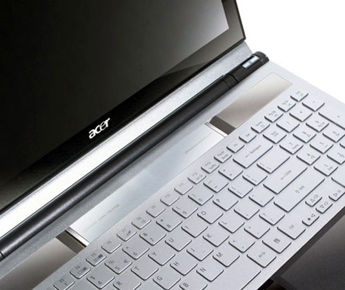 ДизайнМодель выглядит эффектно и стильно, главным образом, благодаря изящному серебристому корпусу. Внешняя поверхность ноутбука изготовлена из алюминиевого сплава, благодаря которому Acer Aspire 5950G будет легким и в то же время прочным. Теперь металлическим панелям будут не страшны различные повреждения или падение с небольшой высоты. ![]() В изготовлении внутренней части использованы различные материалы. Так, например, рамка вокруг клавиатуры выполнена из алюминия, а все остальные части из глянцевого пластика. В отношении цветового решения можно отметить контрастное сочетание серебристого и черного цвета. ![]() Основание и крышка ноутбука соединяются массивным шарниром цилиндрического типа. Фиксация внешней поверхности происходит достаточно туго, поэтому защелки не предусмотрено. Довольно тяжелую крышку ноутбука можно раскрыть на угол, не превышающий 180 градусов и комфортно работать либо смотреть видео. ![]() Качество сборки данной модели неплохое. Налицо жесткий и прочный корпус, который не поддается продавливанию. Немного деформируется крышка, потому что не настолько толстая, как может показаться. Но за защиту дисплея можно не волноваться, поскольку металлическая основа внешней панели обеспечит надежность. Дисплей и звукНоутбук Acer Aspire 5950G оснащается дисплеем Acer CineCrystal с размерами по диагонали 15.6 дюйма с разрешением 1366х768 пикселей. Этот экран может похвастаться высокой контрастностью, яркостью и отличной цветопередачей. Также заслуживают внимания широкие углы обзора и светодиодная подсветка, благодаря которой можно полноценно работать даже в условиях недостаточного освещения. К сожалению, при солнечной погоде увидеть что-либо будет трудно. ![]() В общем, с таким экраном можно полноценно просматривать веб-страницы и смотреть видео в небольшой компании. Стереодинамики Virtual Surround Sound акустической системы поддерживают технологию Dolby Home Theater. Следовательно, выходящий звук будет глубоким и объемным. Звуковых эффектов и оптимального сочетания высоких и низких частот также можно добиться при помощи технологии CineSurround. В любом случае, даже при хорошем запасе громкости без подключения внешней аудиосистемы не обойтись. Что касается встроенной 1.3 мегапиксельной камеры Acer Crystal Eye, то с ее помощью можно всегда оставаться на связи с друзьями, коллегами, родными. Помимо этого, с функцией Acer Video Conference можно всегда организовать видеоконференцию. Правда, недостатком веб-камеры можно считать не совсем качественное изображение. Клавиатура и тачпадНа рабочей плоскости ноутбука Acer Aspire 5950G разместилась эргономичная островная клавиатура с раздельными клавишами. Плоская поверхность кнопок и отдельный цифровой блок позволят комфортно и быстро работать, набирать тексты и числовые данные. ![]() Сразу под клавиатурным блоком располагается сенсорный манипулятор. Он немного углублен и достаточно чувствителен. С его помощью можно выполнять вертикальный и горизонтальный скроллинг, вращение, масштабирование. Иначе говоря, с поддержкой мультитач, владелец имеет возможность выполнять самые необходимые жесты. ![]() На глянцевой поверхности сенсорного поля находится кнопка, которая позволяет активировать приложения для воспроизведения музыки. Таким образом, Вы получите полноценный мультимедийный центр. Стандартные клавиши тачпада, заменяющие «мыши