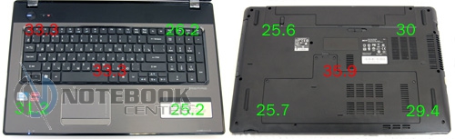 В нашу тестовую лабораторию, как вы уже догадались, попал семнадцатидюймовый ноутбук Acer Aspire 7741ZG. С первых же минут нашего знакомства, мы прониклись к нему симпатией. Во-первых, он довольно привлекательный, при всем своем величии смотрится весьма компактно. Во-вторых, положительное впечатление производит рабочая область ноутбука. Смотрится лэптоп слаженно и гармонично. В-третьих, Aspire 7741ZG обладает сбалансированной комплектацией. Для решения повседневных задач и мультимедийных функций ее вполне достаточно. А самое главное, радует цена. За такой ноутбук придется отдать около 650-700 долларов. Согласитесь, не так уж много по сегодняшним меркам. Для каждого ноутбука есть свой покупатель. Кому-то нужен мобильный помощник для ежедневной работы, кто-то ищет мультимедийного портативного товарища, а есть те, кому просто надоел громоздкий стационарный ПК, и он просто хочет заменить его более компактным мобильным компьютером (удобство работы при этом никак не должно пострадать). Именно для таких целей создан Acer Aspire 7741ZG. Но, у каждого ноутбука есть как достоинства, так и недостатки. В нашем обзоре постараемся максимально объективно оценить плюсы и минусы этой модели. ДизайнСемнадцатидюймовый ноутбук зачастую считается громоздким. Подумать только, но экраны с диагональю 17 дюймов подключаются к системным блокам, как раз таки, в стационарных компьютерах. Создается, своего рода, психологический барьер. Однако этот миф с блеском развеивают представители Acer. Лэптоп Aspire 7741ZG имеет весьма компактные размеры. Так, к примеру, толщина корпуса составляет всего 34.3 мм, а ширина и глубина ноутбука равна 41.5 и 27.5 см соответственно. По весу устройство не превышает 3.3 кг. Переставлять его с места на место будет совсем нетяжело. ![]() Благодаря сдержанному внешнему виду Acer Aspire 7741ZG отлично впишется в любой интерьер. Смотрится ноутбук ненавязчиво, даже как-то чересчур скромно. По форме корпуса этот ноутбук похож на тысячи других: все те же слегка скошенные края, закругленные углы, еле заметная обтекаемость. ![]() На крышке из черного пластика нашлось место только хромированному логотипу Acer. Матовая поверхность имеет рифленое покрытие, причем сам гофрированный рисунок выполнен в виде мелких рисок ромбовидной формы. Кстати, цвет корпуса этого лэптопа может быть разным. К нам на тестирование попала модель Acer Aspire 7741ZG- P624G50Mnkk. Последние четыре буквы указывают на расцветку устройства. В нашем случае окраска черная. Что касается качества пластика, то он не самый прочный. Под давлением пальцев крышка заметно прогибается. Не сказать, что этот недостаток критичен, но отметить его стоило. ![]() Топкейс ноутбука выполнен в совершенно ином стиле. Во-первых, рабочая область выкрашена в темно-серый цвет и стилизована под шлифованный алюминий. Шероховатая поверхности не будет залапывать, пачкаться, на ней не видны царапины. На подладонной области имеются наклейки, описывающие комплектации модели. По краю всех граней топкейса тянется полоска из черного глянцевого пластика. Такое решение несколько освежает консервативный интерьер модели. Кстати, кромка клавиатурной области тоже сделана из черного глянца. ![]() Над клавиатурой пользователь заметит широкую полоску из черного перфорированного пластика. Ближе к левому краю дизайнеры разместили большую кнопку включения и два индикатор