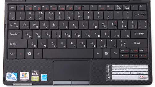 ДизайнРазмеры корпуса нетбука Packard Bell Dot U, как и вес достаточно небольшие. Для пользователя не будет проблемой брать его постоянно с собой, потому что габариты 259х184х26 мм позволят поместить этот нетбук в портфель или сумку. Вес менее полутора килограммов также не оставит равнодушными большинство юзеров. Что касается оформления, то все панели нетбука изготовлены из пластика и в зависимости от комплектации могут быть красного или черного цвета с нанесенными тонкими волнистыми линиями. В целом, нетбук выглядит отлично: красивая глянцевая крышка, хромированный логотип компании, скошенные грани, закругленные углы. ![]() ![]() Но особо порадовала прочность IMD-пластика, который превосходно противостоит перед разными повреждениями, например, царапинами. А вот отпечатки пальцев на глянцевых поверхностях видны очень хорошо. ![]() Внутренняя область нетбука Dot U иная. Во-первых, она не глянцевая, а матовая. Во-вторых, в экстерьере предусмотрен не только гладкий пластик, но и поверхность с текстурным рисунком. В частности, он заметен на площадке для запястий. Что касается качества сборки, то здесь нет практически ни одного слабого места, которое можно было бы продавить или прогнуть. Крышка нетбука жесткая, нижняя часть не менее надежная. Дисплей и звукМини-ноутбук Packard Bell Dot U оснащается 11.6-дюймовым TFT-дисплеем высокой четкости со стандартным разрешением 1366х768 точек. Следовательно, шрифт на экране будет хорошо виден, и глаза во время длительной работы напрягаться не будут. Помимо этого, широкоформатный экран может похвастаться светодиодной подсветкой и глянцевым покрытием, благодаря которым изображение будет не только достаточно ярким, но и сочным. Правда, у глянца есть и обратная сторона. В частности, дисплей сильно бликует и отражает, когда работаешь в яркий солнечный день. ![]() Горизонтальные углы обзора экрана, честно говоря, порадовали. Держа ноутбук на коленях, либо работая за столом, Вы сможете просматривать фото, видео, отклоняя дисплей, и не переживать, что при первой возможности инвертация цветов даст о себе знать. Вертикальные углы обзора немного хуже. На рамке дисплея установлена встроенная веб-камера с разрешением 1.3 Мп, которая прекрасно подойдет для организации видеоконференций, а также для общения с друзьями в скайпе. В принципе, выводимое камерой изображение, будет довольно четким и ярким. ![]() Акустика не впечатлила. Понятно, что ожидать от нетбука идеального звучания не приходится, но хотелось, чтобы и искажений при увеличении громкости не было, и чтобы ее уровень был лучше. Клавиатура и тачпадКлавиатура нетбука Packard Bell Dot U, несмотря на то, что имеет небольшие размеры, довольно удобная. Оптимальный размер 84 кнопок клавиатурного блока поможет набирать тексты даже «слепым» методом. Правда, не обошлось без уменьшения клавиш стрелочного блока. ![]() Тачпад поначалу не производит особого впечатления. Он немного углублен, имеет небольшую площадь, да и чувствительности ему не хватает. Но при настройках, функциональность сенсорного манипулятора была, как нельзя лучше оценена. Управлять курсором удобно, вертикальная прокрутка выполняется отменно. ![]() Процессор и комплектацияНетбука Packard Bell Dot U продается вместе с предустановленной 64-разрядной операционной системой Microsoft Windows 7 Home Basic. Эта ОС хорошо справится с выполнением основных задач, в 