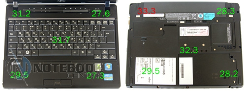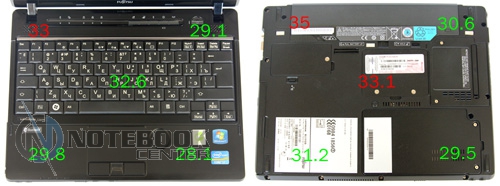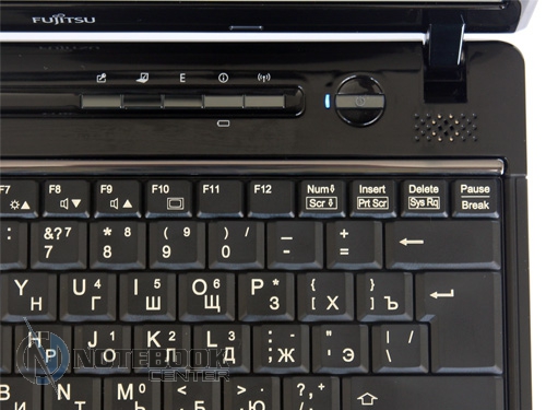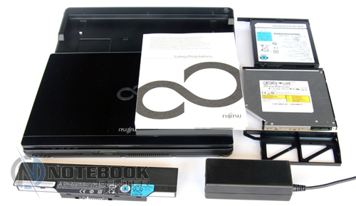 Комплект поставкиКак приятно, когда в коробке помимо самого ноутбука, аккумулятора, сетевого шнура, блока питания и ряда брошюр, находится что-то еще. В комплекте поставки Fujitsu LIFEBOOK P771 можно найти Accessory Box, в котором спрятался порт-репликатор и дополнительная трехсекционная аккумуляторная батарея. Для бизнес-ноутбука эти компоненты очень кстати, ведь функциональность и автономность мобильного ПК с такими аксессуарами возрастает в разы. ![]() ДизайнКак должен выглядеть бизнес-ноутбук? По сути, на этот вопрос можно ответить однозначно. В оформлении корпоративного мобильного ПК редко встретишь креативные обводки, разноцветный пластик или раскрашенный металл, светодиодные вставки или мультимедийные сенсорные панели. В таких аппаратах должно быть все сдержанно, строго и чинно. Fujitsu LIFEBOOK P771 – не исключение. Этот лэптоп имеет габариты 282 x 215 x 29.9 мм, весит мобильный компьютер 1.4 кг. Крышка по краям скошена незначительно, углы корпуса закруглены. Классическая внешность только подчеркивает бизнес принадлежность ноутбука. ![]() Корпус ноутбука выполнен из магниевого сплава, хотя на первый взгляд может показаться, что он пластиковый. Ничего удивительного в этом нет: на крышку лэптопа нанесено пластиковое напыление. Выглядит такое решение весьма стильно и привлекательно. Определить характер и состав материала корпуса «на глаз» довольно непросто, ведь по виду это напыление ничем не отличается от тривиального пластика. Магний, как материал корпуса, выбран не случайно. Этот металл отличается высокой прочностью и легкостью. Стоит помнить, что существует два варианта оформления Fujitsu LIFEBOOK P771: глянцевое и матовое. Если ноутбук глянцевый и, к тому же, оборудован процессором Intel Core i7 (а тестируемая модель оснащена именно таким CPU), то можно с уверенностью сказать, что крышка такого аппарата сделана из магниевого сплава. Такова особенность данной модели. Неприятный момент заключается в непрактичности, как раз таки, глянцевого покрытия. Крышка настолько быстро и сильно залапывается, что уследить за ее чистотой очень и очень сложно. Чтобы привести лэптоп в первозданный вид, нужно воспользоваться тряпочкой из микрофибры. Увы, в комплекте поставки таковой не оказалось. По краю одной из сторон крышки тянется полоса шириной 1 см. Под ней спрятаны антенны модулей беспроводных сетей. ![]() В оформлении топкейса используется глянцевый и матовый пластик черного цвета. Подладонная область выполнена из шершавого рифленого материала, рабочая поверхность имеет рисунок в виде мелких квадратиков. На таком пластике практически не остаются следы от пальцев и пыль. Панель, расположенная над клавиатурой, имеет глянцевое покрытие. Традиционный недостаток такой поверхности – маркость. На этой панели разместились пять дополнительных клавиш, пять индикаторов, два динамика и круглая кнопка включения. Для открытия/закрытия крышки предусмотрены два небольших шарнира. Петли позволяют дисплею откидываться на 160-170 градусов. По периметру глянцевой рамки экрана разместились шесть прорезиненных ножек. Они предотвращают соприкосновение дисплея и клавиатуры. Днище выполнено из матового пластика. На нем можно заметить съемные панели, под которыми спрятаны заменяемые компоненты, аккумуляторную батарею и разъем для подключения к лэптопу порта репликатора. ![]() Дисплей и зву