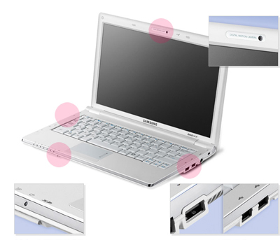 ДизайнSamsung NC20 позаимствовал свой дизайн у предшественника - NC10. Закругленные края и матовый пластик, вот основные особенности дизайна. На своей родине в Корее эта модель выпускается в белом цвете, но за рубежом будет доступна и модель, выполненная в черном корпусе. На передней части нетбука расположены индикаторные лампочки, говорящие о режиме работы, наличии или отсутствии беспроводной сети, питания и т.п. ![]() Ярко-синяя кнопка включения располагается с правой стороны возле петли крепления дисплея к корпусу. Дизайнеры компании решили несколько освежить классический дизайн корпуса и добавили серебристую полоску, которая проходит по краю нетбука, за исключением задней части, где располагается батарея. ![]() Samsung NC20 имеет больший размер, нежели другие 12" модели нетбуков, например его самые ближайшие конкуренты - Dell Inspiron Mini 12 и ультрапортативный Lenovo ThinkPad X200. При габаритах 11.5" x 8.5" х 1.2" NC20 толще, чем Mini 12 на 0.4", а это 1 см. Средний вес нетбука составляет примерно 1.27 кг, а NC20 весит все 1.54 кг со стандартной 6-сегментной батареей. ![]() ДисплейГлянцевый 12" экран, установленный на NC20, имеет разрешение 1280 x 800 пикселей, и имеет существенные преимущества по сравнению с 10" дисплеями устанавливаемые на большинство нетбуков, представленных на данный момент на рынке. Так два дополнительных дюйма позволяют, например, открыть две веб-страницы рядом друг с другом, при этом их весьма комфортно и удобно читать. ![]() Глянцевый дисплей NC20 имеет неплохую цветопередачу, а горизонтальный угол обзора позволяет без искажений рассматривать двум людям фотографии или видеоролики. Вертикальный угол обзора имеет не столь впечатляющие значения, но впрочем, и его достаточно для работы. ![]() Над дисплеем располагается 1.3 мегапиксельная веб-камера, которая весьма качественно передает картинку, например, при разговоре по Skype. Даже при резких движениях картинка остается довольно четкой и контрастной. ![]() Клавиатура и тачпадРасширенный корпус NC20 позволил разместить клавиатуру, которая всего на 3% меньше полноразмерной. К примеру, модель NC10 может похвастаться клавиатурой на 93% идентичной полноразмерной. В свою очередь большинство нетбуков имеет клавиатуру, расстояние между клавишами которой составляет 16-17.5 мм, а это всего 84-92% от полноразмерного значения. Но в целом по качеству и расположению клавиш новая клавиатура ничем не отличается от своего предшественника. Рельефная поверхность кнопок обеспечивают хорошую тактильную обратную связь, что делает процесс работы на клавиатуре весьма комфортным. ![]() Например, клавиша правый Shift имеет 100% размер и располагается под клавшей Enter, что полностью соответствует традиционному расположению клавиш. Непонятным остался тот факт, почему разработчики решили сделать клавиши позиционирования меньшего размера, по сравнению с остальными. ![]() Также обновления затронули и сенсорную панель, теперь ее размер составляет 2.8" x 1.7" (габариты тачпада NC10 всего 2.3" x 1.1"), область для прокрутки стала больше и использовать ее теперь удобнее. Функциональная клавиша всего одна, нажатие на правую или левую ее стороны соответствует функциям левой и правой кнопкам мыши. Такое решение не совсем удобное, но все же имеет право на существование. ИнтерфейсыНабор портов у нетбука NC20 такой же, как и у его предшественника, модели NC10, - три порта USB 2.0, кард-ридер 3-в-1, раз