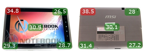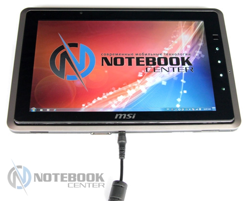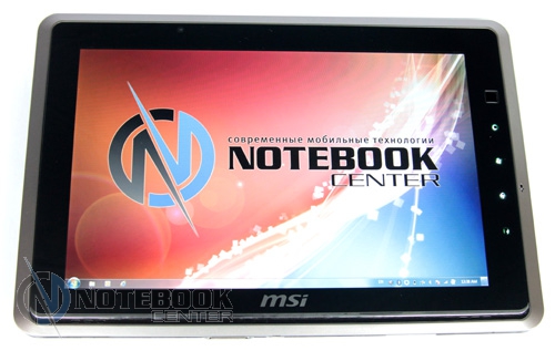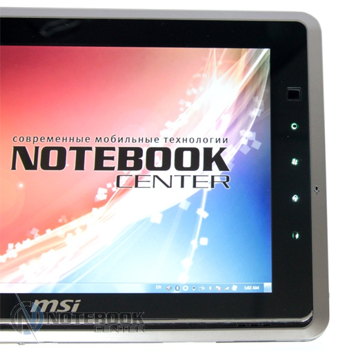 Комплект поставкиК сожалению, мы не можем подробно описать комплект поставки планшета, поскольку к нам на тестирование пришел инженерный образец. Тем не менее, в коробке мы нашли сам WindPad W110 и блок питания. ![]() Сложно сказать, что еще будет в комплекте с теми планшетами, которые будут идти на продажу. Не исключено, что это может быть, как физическая клавиатура, так и док-станция. В любом случае к планшету будет прилагаться еще краткое руководство, загрузочный диск и чехол для защиты. ДизайнВнешний вид планшета MSI WindPad 110W, в принципе, такой же, как и большинства подобных устройств. Размеры его 274х85х15 мм, вес 866 граммов. Корпус планшета пластиковый, но собран он добротно, не скрипит и не прогибается. В общем, выполнен качественно. К слову сказать, в планшете нет острых углов, все обтекаемо, закруглено, комфортное использование обеспечено. ![]() Фактически вся верхняя часть планшета – это сенсорный дисплей. Здесь все прочное, нет ни намека на какую-то деформацию. Серая окантовка вокруг экрана сделана из пластика. Она не ровная, а немного спускается к торцам планшета. А вот рамка, непосредственно расположенная по периметру дисплея, черная. На ней мы видим надпись MSI в нижней части. Днище планшетного ПК, как уже говорилось ранее, изготовлено из пластика. Издали создается впечатление, что это шлифованный металл. Цвет нижней панели темно-серый, не маркий. Впрочем, от постоянного использования отпечатки все равно будут оставаться. ![]() По периметру днища ножек нет. Скорее всего, это только в нашем тестовом образце, а так они должны быть. На месте их установки имеются отверстия, в которых находятся винты, благодаря которым крепится задняя крышка. По центру можно увидеть вентиляционную решетку, через которую поступает воздух. Выше располагается фирменный логотип компании MSI. ![]() При транспортировке WindPad 110W вам может показаться, что корпус достаточно скользкий, так что держать планшет будет несколько неудобно. В общем, дело привычки. Зато на передней грани есть специальные отверстия. В них вдевается ремешок или какой-нибудь удобный шнурок. Таким образом, вы сможете спокойно нести планшет, не рискуя его уронить или потерять. ![]() Дисплей и звукВ планшете MSI WindPad 110W установлен емкостной 10.1-дюймовый дисплей Hannstar HSD101PWW1A. Широкоформатный экран WXGA имеет разрешение 1280х800 пикселей и соотношение сторон 16:10. В целом, дисплей довольно яркий, имеет отличную насыщенность цветов, превосходную глубину и контрастность. Даже углы обзора данного экрана и равномерность подсветки достаточно хороши. В общем, не зря мы имеем дело с IPS-матрицей, которая прекрасно подойдет для чтения текстовых документов, веб-серфинга или просмотра видеороликов. Кстати, с такой матрицей пользователю понравится и редактировать фото. ![]() Понятно, что дисплей в планшете сенсорный и у него есть преимущества в плане ввода символов, работы с приложениями. Начнем с того, что экран поддерживает мультитач-жесты, поэтому при просмотре изображений вы сможете вращать их, удалять, приближать. Поддерживаются и более простые жесты – вертикальный и горизонтальный скроллинг. Что действительно поразило, это слишком маркая поверхность дисплея. На ней остается слишком много отпечатков пальцев. Стоит отметить, что в планшете используется датчик освещенности. Он настраивается по типу минимального освещения. В ит