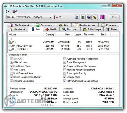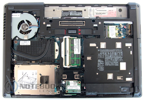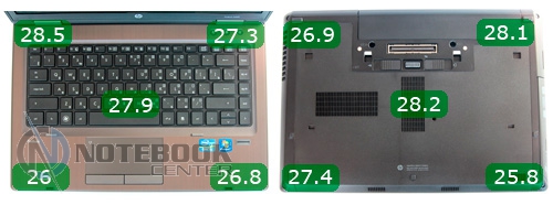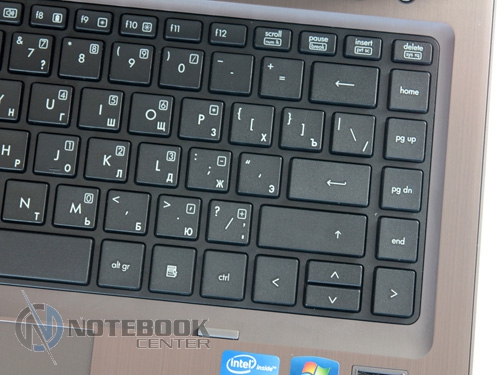 Комплект поставкиНоутбук попал к нам на тестирование в небольшой картонной коробке черного цвета. В ней находился сам ProBook 6460b весом 2.47 кг и инструкции по настройке. Также в упаковке мы нашли неотъемлемые атрибуты: блок питания, аккумуляторную батарею, провода. Отдельно лежали три загрузочных диска с программным обеспечением и красочный буклет, в котором предлагались различные аксессуары к ноутбуку. Еще один «элемент» поставки находился на рабочей площадке ноутбука – специальная салфетка. ![]() В целом, можно сказать, что производитель предусмотрел все что нужно. ДизайнПервое впечатление от ноутбука – сдержанный минималистический стиль – подтверждается полностью. Безупречный вид HP ProBook 6460b целиком подтверждает матовая поверхность, использование четких границ, крышка из алюминиевого сплава (анодированный алюминий). Текстуры как таковой на внешней поверхности нет, зато видим деление внешней поверхности на две зоны – более тонкая темно-серая, основная с логотипом светлее. ![]() В оформлении корпуса использован серый и черный цвет. В принципе, сочетание этих двух цветов смотрится гармонично, правда, некоторым может показаться, что эта гамма слегка унылая. Ее частично «разбавляет» фирменный логотип компании-производителя Hewlett Packard. Он занимает центральную часть крышки. Кстати, к надежности самой крышки вопросов нет – она жесткая, практически не прогибается. Интересно, что внешней поверхности, как и остальным частям корпуса царапины и другие незначительные повреждения не страшны. Внутренняя часть ноутбука ProBook 6460b выглядит достаточно просто, без всяких изысков. Впрочем, эта простота на самом деле придает интерьеру в целом строгий деловой вид. В первую очередь мы видим приятную на ощупь подладонную площадку. Она сделана из металлического сплава, в котором используется магний. Шлифованная зона для запястий порадует гладкой прохладной поверхностью. В итоге, ваши руки не только не устанут, но и не почувствуют неприятного нагрева. Как уже упоминалось, вся рабочая площадка это гармоничное сочетание черного и серого цвета. Такая гамма создаст рабочий настрой, и не будет отвлекать от выполнения серьезных задач. ![]() Посмотрим, какова рамка дисплея. Здесь использован пластик. Он достаточно прочный, не скрипит, не гнется. Привычных резиновых ножек в верхней части окантовки вы не увидите. Зато избежать касания клавиатуры и дисплея помогут специальные упоры, расположенные возле клавиатуры, и длинная резиновая полоса по периметру рамки. Кстати, та же тонкая полоска резины сможет предотвратить люфт крышки ноутбука в закрытом положении. Добавим, что HP ProBook 6460b закрывается достаточно плотно, фиксируется с помощью крепкой защелки. Как и в большинстве ноутбуков, основание и дисплей соединяются двумя небольшими петлями. Они не только надежно закрепляют экран в заданном положении, но и позволяют его раскрыть более чем на 180 градусов. ![]() Днище ноутбука ProBook 6460b сделано из прочного пластика. На его поверхности предусмотрены четыре прямоугольные ножки по углам и две маленькие квадратные по бокам корпуса. Также на обратной стороне ноутбука можно увидеть два вентиляционных отверстия, специальные выемки для установленной док-станции, а также ползунки для снятия АКБ и нижней крышки. Кстати, получить доступ к внутренним компонентам (винчестеру, пам