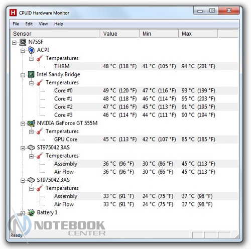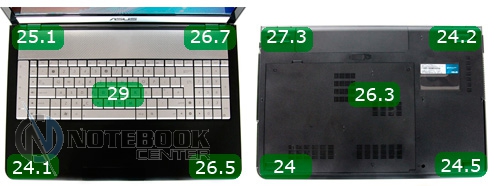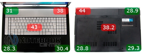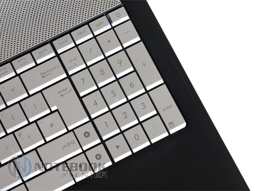 Комплект поставкиК нам на тестирование пришел инженерный образец ASUS N75SF. Он был упакован в картонную коробку больших размеров. Внутри мы увидели сам ноутбук. Он находился в пластиковом «лотке». Вся коробка была разделена на несколько отсеков. Кроме отдела для ноутбука здесь было выделено место для блока питания, аккумуляторной батареи. Под местом для ноутбука было отделение, по-видимому, предназначенное для необходимой документации. Но так как у нас был инженерный образец, ее мы не увидели. А вот что действительно обрадовало, это наличие в комплекте небольшого сабвуфера SonicMaster. Он достаточно компактный, имеет цилиндрическую форму. ДизайнМультимедийный ASUS N75SF уже с первых минут сумел удивить. Корпус ноутбука монолитный, несколько громоздкий, без острых краев. Глянцевая поверхность крышки шикарно смотрится в любом месте и с любой точки обзора. Даже отражающая поверхность и маркость не оставили неприятного впечатления. Заметим, что лакированную крышку превосходно оттеняет хромированная окантовка по краям. Рамка, как и все остальное, сделана из пластика. Плоскость окантовки слегка углублена. Кстати, в дизайне это не единственный хромированный элемент. На крышке ноутбука почетное место занимает фирменный логотип производителя ASUS. ![]() Немного привыкнув к большим габаритам ноутбука, мы решили рассмотреть внутреннюю поверхность. Здесь можно увидеть две основные цветовые зоны, построенные на контрасте. Это серебристый и «глубокий» черный цвет. Сразу отметим, что область клавиатуры, решетка над ней и отдельно вынесенная панель со светодиодными индикаторами имеют стальной цвет. Подобным образом отмечена и нижняя часть над экраном – металлическая панель серебристого цвета. На ней расположен логотип компании ASUS и надпись фирменной акустики Bang & Olufsen. Вся остальная часть интерьера темная. Это, в первую очередь, подладонная площадка, петли, соединяющие экран с основанием, и рамка дисплея. ![]() Стоит отметить, что кроме игры светлого и темного тонов, освежающих интерьер ASUS N75SF, дизайнеры решили поэкспериментировать с матовой и глянцевой отделкой корпуса. В частности, внутренняя поверхность за исключением рамки дисплея практически полностью матовая. На ней не сильно видны отпечатки пальцев. Сама область приятна на ощупь. Она гладкая, плавная. Интересно, что из-за чересчур большой решетки над клавиатурой не слишком заметны две петли. Впрочем, несмотря на их небольшие размеры, петли способны плотно и надежно удерживать дисплей. Кстати, благодаря шарнирам широкоформатный экран ноутбука раскрывается на 140 градусов, чего будет достаточно для комфортной работы за столом. Заметим, что при закрытии ноутбука, когда остается примерно градусов 12, срабатывает автодоводка. В этом случае избежать касания рабочей части и дисплея помогут специальные резиновые ножки. Их немного – две вверху и две по бокам, но все они достаточно длинные. Нижняя панель ноутбука ASUS N75SF в отличие от крышки и рабочей поверхности шероховатая. Она также сделана из пластика, довольно жесткого, устойчивого к деформациям извне. В каждом из четырех углов днища находятся большие резиновые ножки. Они высокие и помогают хорошо приподнимать ноутбук над поверхностью стола. Кстати, они помогают свободно циркулировать воздуху. ![]() К слову сказать, нижняя панель ноутбука оснащаетс