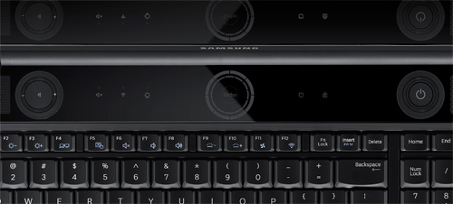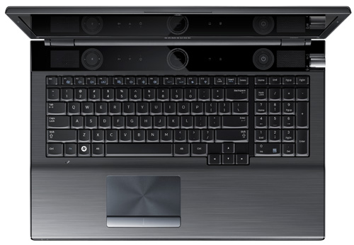 ДизайнКорпус ноутбука Samsung 700G7A сделан из пластика. Причем, как на крышке, так и внутри создается обманчивое впечатление, что это металл. Да, текстура действительно напоминает шлифованный алюминий, но это всего лишь удачный дизайнерский ход. Впрочем, это не снижает интереса к ноутбуку, поскольку такое оформление выглядит впечатляюще. Отметим, что внешняя поверхность немного маркая, но удивительно привлекательная. ![]() Днище ноутбука, как и крышка, выполнено в темных тонах. На его поверхности расположены четыре крупные ножки, приподнимающие ноутбук над поверхностью, и встроенный сабвуфер. Также на нижней панели можно увидеть вентиляционные отверстия и отсек для доступа к внутренним компонентам, который открывается быстро и легко. Для этого следует открутить всего один шуруп. ![]() Если оценить дизайн в целом, то он скорее сдержанный, хотя производители добавили несколько «освежающих» элементов. В частности, в интерьере можно увидеть стеклянную панель над клавиатурой, а на крышке, что впрочем, неудивительно, фирменный логотип Samsung. Есть еще и незабываемые моменты. Например, дифференцированная подсветка клавиш в игровом режиме, оригинальное колесо прокрутки. ![]() Наверное, многие засомневаются в прочности пластикового корпуса. На самом деле ноутбук собран качественно, зазоры видны, только если сильно присмотреться. Дисплей и звукВ ноутбуке Samsung 700G7A установлен широкоформатный 17.3-дюймовый дисплей с разрешением 1920х1080 точек. Экран глянцевый, невероятно яркий (400 нит), передает насыщенное красочное изображение. Неудивительно, что использовать данный ноутбук в яркую солнечную погоду можно будет без проблем. Хотя нести его на улицу вряд ли кто-то захочет, но то, что яркости хватит, уже приятно. Кстати, видимой площади дисплея будет достаточно, чтобы играть или смотреть видео. Что касается обзорности, то углы в меру широкие. Во всяком случае, рядом сидящий человек не будет испытывать дискомфорта. Отметим, что Full HD экран еще и достаточно контрастный, поэтому все цвета в изображении будут сочными. ![]() К слову сказать, производитель предусмотрел комплектации ноутбука с 3D дисплеем с частотой обновления экрана 120 Гц. Правда, за это надо будет выложить на тысячу долларов больше. Колонки акустической системы ноутбука Samsung 700G7A расположены сразу над клавиатурой (в левой и правой части). Они спрятаны под двумя перфорированными решетками. Каждый стереодинамик имеет мощность 2 ватта. А если учесть установленный на днище сабвуфер и поддержку Dolby Home Theater, то можно наслаждаться не только высоким уровнем громкости, но и хорошей слышимостью басов и высоких частот. В целом, звучание чистое, без искажений. Для общения в чатах предусмотрена 2-мегапиксельная веб-камера. В принципе, ее возможностей хватит для видео и фотосъемки. В любом случае вы сможете не только быть на связи со своими друзьями, но и записать на камеру интересные сюжеты. ![]() Клавиатура и тачпадНоутбук Samsung 700G7A оснащается полноразмерной клавиатурой, включающей отдельный цифровой блок. ![]() Клавиатура в ноутбуке не островная. Тем не менее «комфортное» расстояние между клавишами соблюдено за счет расширения основания каждой кнопки. Сами кнопки имеют крупные размеры. Кстати, нажимать их удобно не только по этой причине. Дело в том, что матовая поверхность клавиш не плоская, а немного углубленная, та