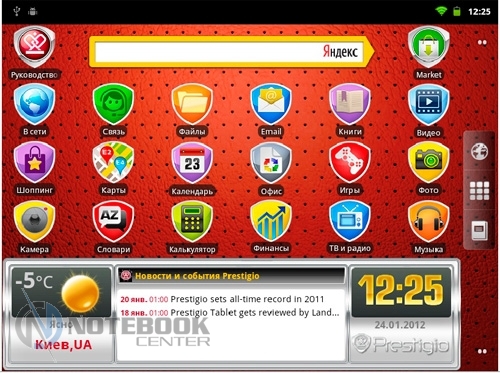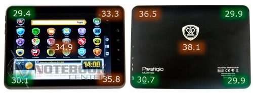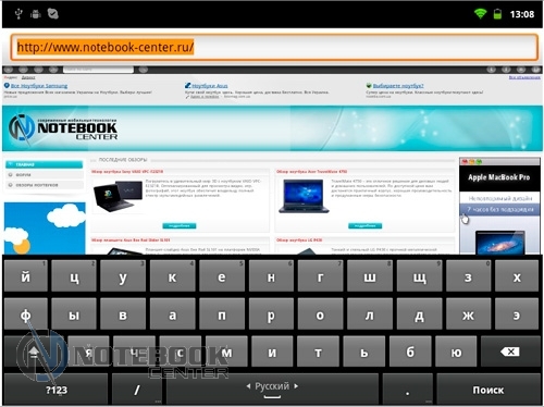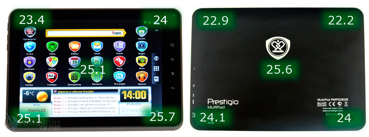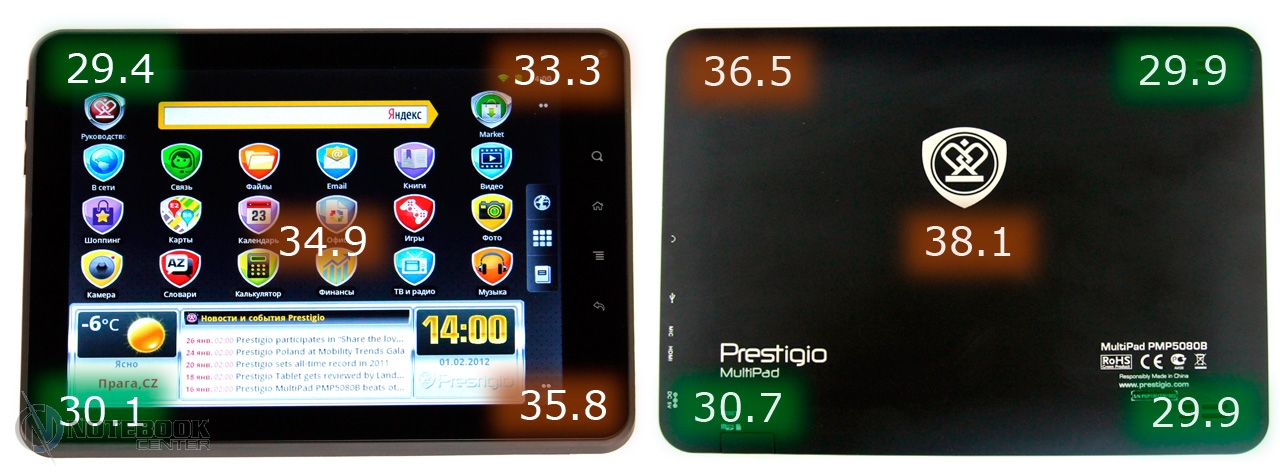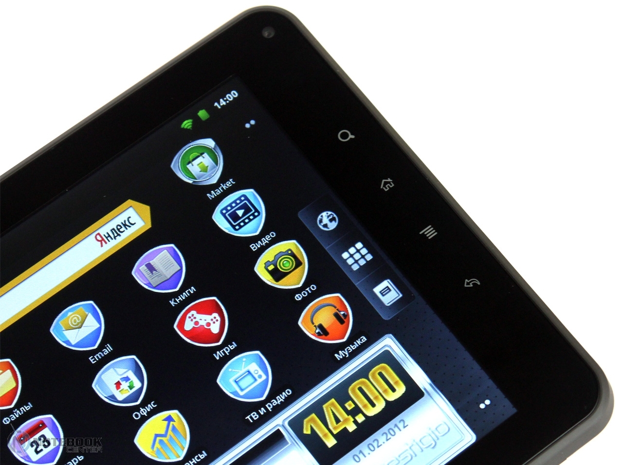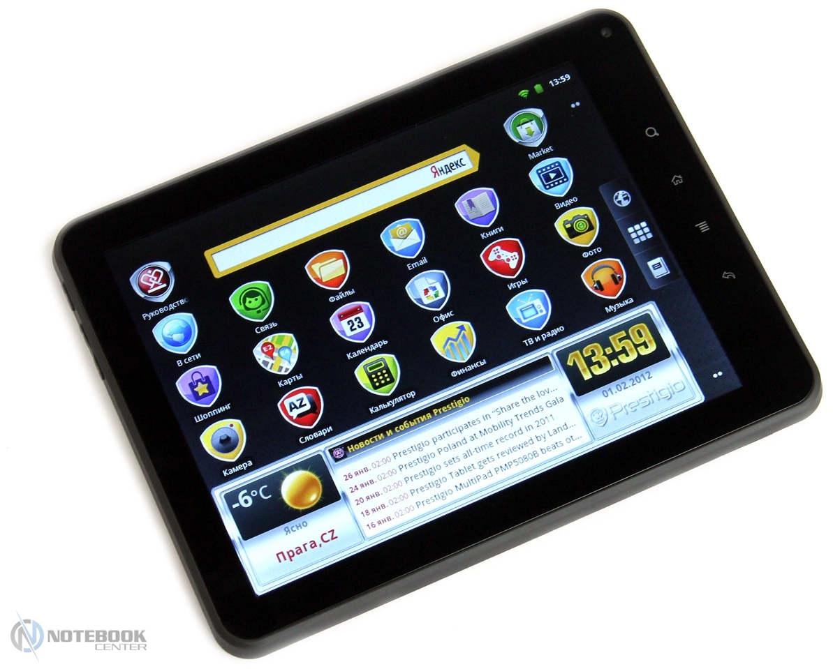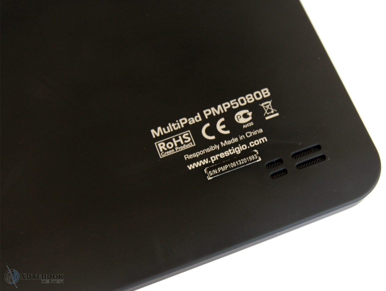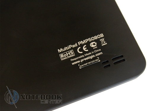 Комплект поставкиСразу видно, что на упаковке производители не сэкономили. Планшет прибыл к нам в красивой коробке красно-черного цвета. Приятно, что в комплекте было все необходимое, что понадобится владельцу. Итак, сам MultiPad PMP5080B находился в стильном чехле из кожзаменителя. На нем мы увидели логотип Prestigio. ![]() Кроме самого планшетного ПК в коробке было краткое руководство, гарантийный талон, правовая информация, в которой содержались сведения о гарантиях и обязательствах. В планшете они есть и в электронном виде. В нижней части коробки производители предусмотрели два отделения. В одном лежал кабель USB и блок питания, во втором – как уже упоминалось, документы к Prestigio MultiPad. В общем, стандартный комплект для планшета включает все, что нужно. ![]() ДизайнСразу отметим, что планшет Prestigio MultiPad PMP5080B достаточно легкий. При весе 510 граммов он имеет габариты 203х153х11 мм. Компактный корпус планшетного ПК закруглен, в нем нет ни единого острого угла. Это очень удобно, поскольку устройство вы будете часто держать в руках. Верхняя часть MultiPad PMP5080B – это непосредственно сам дисплей. Его поверхность крепкая, устойчивая к царапинам. Нижняя панель планшета и боковые грани – это приятный на ощупь прорезиненный soft-touch пластик. Благодаря такому покрытию PMP5080B не выскользнет из рук. Не менее важно рассмотреть данный материал с практичной стороны. На деле этот пластик хорошо скрывает отпечатки пальцев. Доказательства очевидны – сравните с областью глянцевого дисплея, где маркая поверхность будет просто усеяна следами пальцев. Заметим, что soft-touch пластик славится еще и своими износоустойчивыми свойствами. ![]() Что касается «фирменных украшений», то здесь мы увидели лишь логотип на днище планшета. Впрочем, есть еще две миниатюрные решетки, под которыми расположены стереодинамики и разъем для карт microSD. Какие-либо отсеки на нижней поверхности отсутствуют. ![]() Качество сборки планшета MultiPad PMP5080B порадует даже самого требовательного пользователя. Во-первых, PMP5080B не поддается деформации, во-вторых, все детали подогнаны достаточно плотно. ![]() Дисплей и звукПланшетный ПК оснащается 8-дюймовым TFT-дисплеем с разрешением 800х600 пикселей формата 4:3. Такой экран позволит не только комфортно просматривать веб-страницы, фотографии, но и читать электронные книги, играть. Стоит отметить, что программное обеспечение для чтения электронных книг поддерживает следующие форматы: EPUB, PDF, TXT, FB2, RTF. К сожалению, при просмотре видео вы столкнетесь с черными полосами по краям дисплея. Если для вас это не критично, то вам должно понравиться не только читать книги, но и смотреть фильмы. ![]() Также стоит отметить, что емкостной экран поддерживает технологию мультитач. На практике, это подтверждается четкой работой без задержек. Отзывчивость дисплея отличная, не было замечено ни единой заминки. Загруженные изображения легко масштабируются, страницы книг свободно пролистываются. В числе других достоинств дисплея можно выделить хороший уровень яркости (пусть и не настолько высокий как в iPad 2) и четкое изображение. Контрастность экрана и передача цвета приличные, что особенно радует, если учесть небольшую стоимость планшетного ПК MultiPad PMP5080B. А вот углы обзора планшета недостаточно широкие, не сравнить с матрицами IPS. Во всяком случае, при небольшом отклонении дисплея было заметно искажение ц