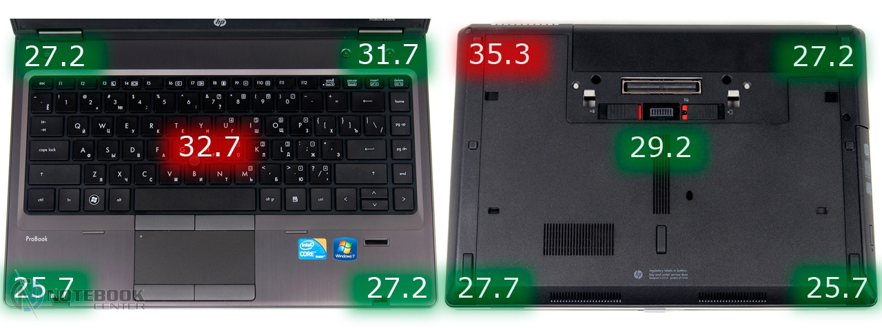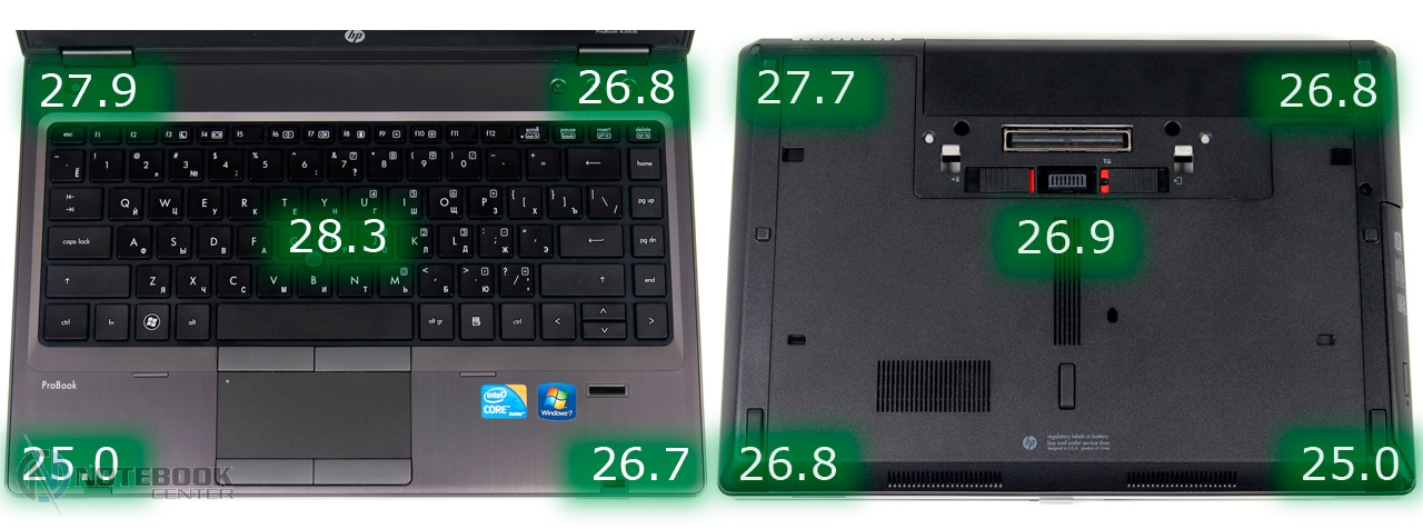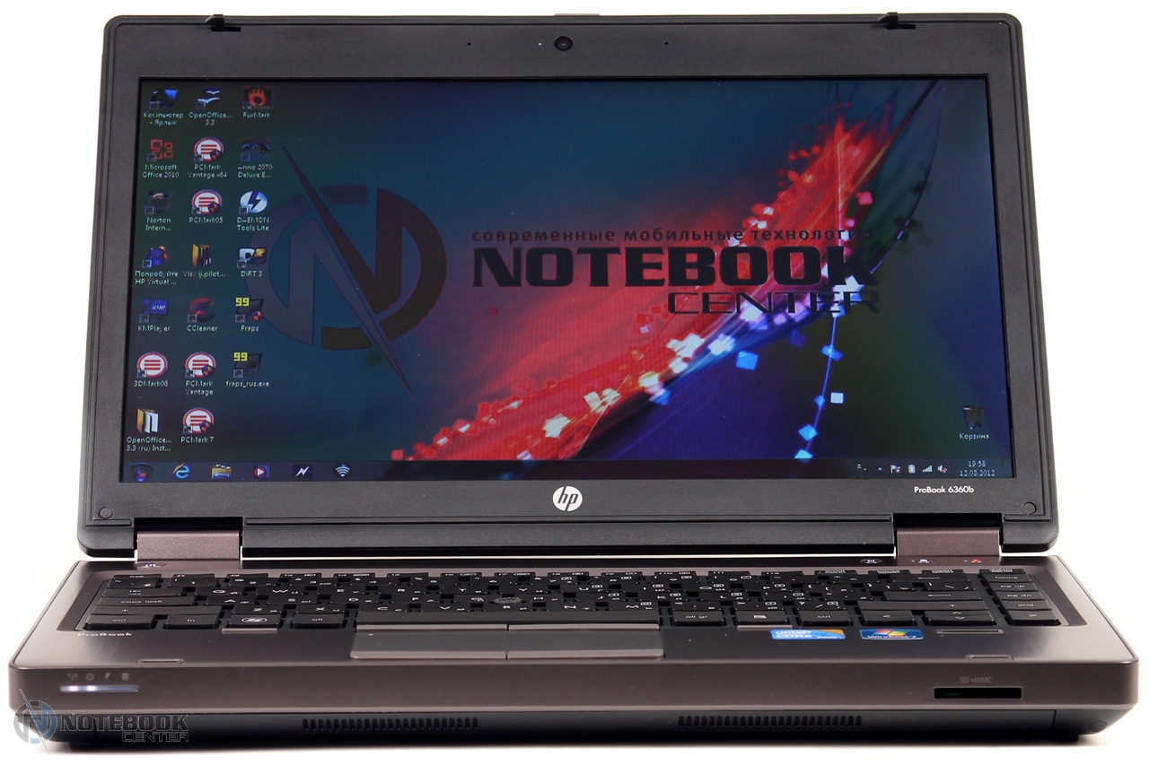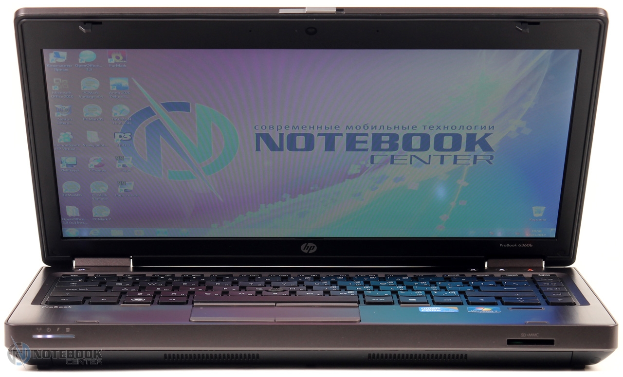 Комплект поставкиПопавший к нам на обзор ноутбук был упакован в фирменную коробку HP, внутри которой содержался сам ноутбук, батарея, 65-ваттный блок питания, инструкция по установке, проспекты с перечислением аксессуаров для ноутбуков HP и док-станций. Также в комплекте поставки было два диска: диск восстановления системы с приложениями и драйверами «Application and driver recovery DVD for HP and Compaq PC's», и диск с операционной системой Windows 7 Professional. ![]() ДизайнДизайн ноутбука нельзя назвать стильным или ярким. Корпус сам по себе угловатый, боковые плоскости имеют небольшую скошенность к днищу. Что касается материалов отделки, то верхняя крышка, подладонная поверхность и боковые грани до середины выполнены из металла. Нижняя часть граней, днище, а также рамка вокруг дисплея изготовлены из черного пластика. И металл, и пластик достаточно качественны, замечания к качеству сборки отсутствуют. ![]() Из отличительных особенностей можно выделить верхнюю крышку слегка выпуклой формы и расположившейся на ней логотип компании HP. В целом все четко, строго и лаконично, как и должно быть в корпоративном сегменте. ![]() Дисплей крепится к основной части с помощью двух петель, которые позволяют открывать его на 180 градусов. Петли крепления дисплея не самые надежные, наблюдается небольшое пошатывание. Крышка ноутбука удерживается в закрытом состоянии с помощью защелки, которая довольно легко открывается. Данную операцию можно произвести и одной рукой. Единственным недостатком крышки является небольшое пошатывание в открытом состоянии и недостаточная жесткость крепления. Днище, изготовленное из пластика, не имеет дефектов и щелей, но довольно сильно прогибается в нескольких местах. Хочется выделить возможность снятия нижней крышки без откручивания каких-либо винтов. Если вам нужно произвести замену частей или улучшить производительность путем добавления новых комплектующих, то вам достаточно отжать два крепления возле батареи и чуть сдвинуть крышку. ![]() Ноутбук довольно компактный, единственным его недостатком является его толщина, даже благодаря скошенным краям, силуэт ноутбука все равно смотрится довольно толстым. Габариты HP ProBook 6360b составляют 322х220х34 мм, а вес 2.15 кг. ![]() Дисплей и звукВ HP ProBook 6360b установлен 13.3-дюймовый дисплей. Что касается его качества, то он соответствует матрицам, установленным в бюджетных моделях. Яркость и контрастность имеют средние показатели, к примеру, как и на большинстве TN-матриц, черный цвет похож больше на серый, чем на черный. ![]() Углы обзора посредственные, посмотреть фильм в компании друзей не получится, так как углов обзора не хватит. Но если вспомнить, что ноутбук относится к корпоративному сегменту и его главная задача это, в основном, работа с документацией, то для такого типа работы углов обзора будет достаточно. Если более подробно их рассмотреть, то можно сказать, что горизонтальные углы немного лучше, чем вертикальные, в целом работать за таким дисплеем удобно. ![]() ![]() Главным достоинством дисплея установленного в HP ProBook 6360b является его матовое покрытие. В отличие от глянца, матовое дает возможность работать за ноутбуком даже в солнечную и ясную погоду. В данной модели установлены стандартные динамики. Уровень громкости довольно высок, а вот о качестве звучания много рассказывать не станем, особыми характеристиками з