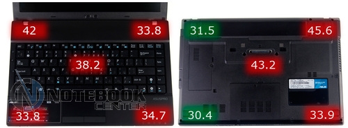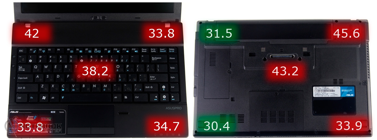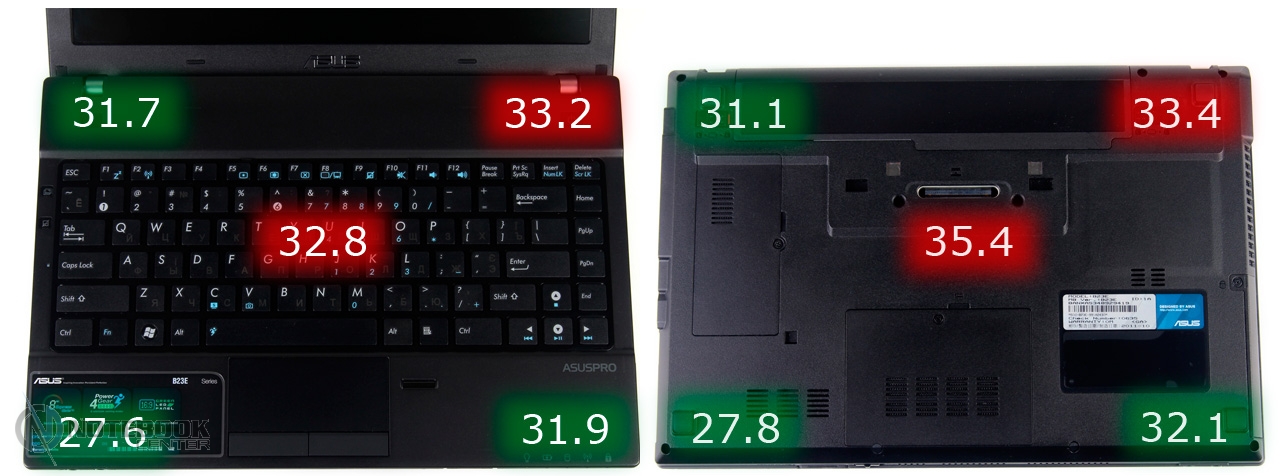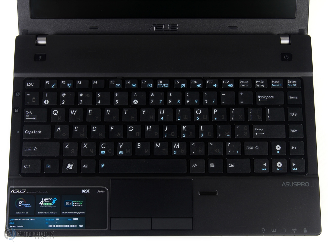 Комплект поставкиК нам на тестирование пришел инженерный образец, поэтому мы не можем судить о том, насколько хорошо или плохо укомплектован ASUS B23E. По-видимому, это будет аккумуляторная батарея с проводами, блок для подзарядки ноутбука, загрузочные диски и документация. То есть все необходимое. ДизайнПроизводители заявляют, что корпус ноутбука достаточно крепкий. Он изготовлен из металлического сплава и из пластика. Алюминиево-магниевый сплав хорош не только в плане прочности, он легкий и выглядит стильно. Кстати, как уже упоминалось, B23E относится к серии таких устройств, которые проходят различные «стрессоустойчивые» тесты, например, на устойчивость к падению. В принципе, все подтверждается и на деле. Попытка прогнуть крышку не увенчалась успехом. Зазоров тоже нет. ![]() Если немного отойти от практичной стороны к внешнему оформлению, то можно отметить слишком сдержанный и аккуратный дизайн. Панели ноутбука четко очерчены, вид ASUS B23E строгий и деловой. Передняя часть крышки скрывает антенны беспроводной сети, а из всех декоративных элементов можно увидеть только логотип ASUS. Основная часть внутренней поверхности это матовый пластик. Он достаточно жесткий, но маркий. Отпечатки пальцев на нем хорошо просматриваются. Глянца в интерьере практически нет. Его видно лишь на подложке клавиатуры. ![]() Для того чтобы дисплей и рабочая область ASUS B23E не соприкасались, на рамке предусмотрены резиновые ножки. Две квадратные находятся в углах, а шесть продолговатых расположены по периметру. Темная окантовка вокруг дисплея «разбавлена» хромированным логотипом ASUS. ![]() Аналогично крышке ноутбука и днище, не менее устойчивое к деформации. Здесь использован пластик черного цвета. Стоит отметить, что на нижней панели есть несколько небольших отсеков, за которыми скрыты внутренние компоненты. Каждую крышку снять достаточно легко, стоит лишь раскрутить один винтик. Интересно, что поверхность днища имеет два уровня. «На возвышении» располагается разъем для док-станции и непосредственно сам аккумулятор. Заметим, что часть батареи не только гладкий пластик, но и рифленый. И, наконец, завершают целостность оформления четыре резиновые ножки. Они находятся по периметру днища. Поверхность ножек квадратная, слегка вогнутая. В общем, ноутбук вряд ли будет скользить на столе. ![]() Дисплей и звукНоутбук ASUS B23E оснащается 12.5-дюймовым растровым дисплеем B125XW01 V0 с разрешением 1366х768 пикселей. Символы на таком экране чуть меньше средних, но это нисколько не напрягает. Если же вам комфортней воспринимать более крупный шрифт, то это легко настроить. В итоге, вы сможете свободно работать с двумя раскрытыми приложениями или просматривать веб-страницы. Широкоформатный дисплей хорош и для просмотра видео. Соотношение сторон 16:9 позволит избежать темных полос по краям, а достаточный уровень яркости и контрастности значительно улучшит впечатление от фильма. Кстати, экран имеет светодиодную подсветку и насыщенные цвета. С LED-подсветкой можно продлить срок службы дисплея. ![]() Заметим, что для удобства работы вы можете варьировать угол наклона дисплея. Максимально он может раскрыться на 150 градусов. Это удобно, если предполагается использовать ноутбук не только на столе, но и на коленях. Удерживается экран очень плотно с помощью двух небольших петель. При закрытии ASUS B23E, 