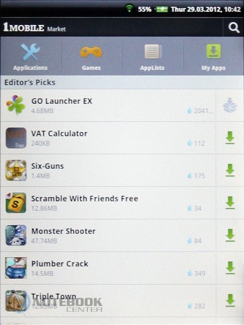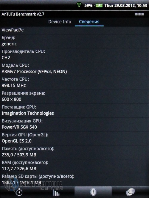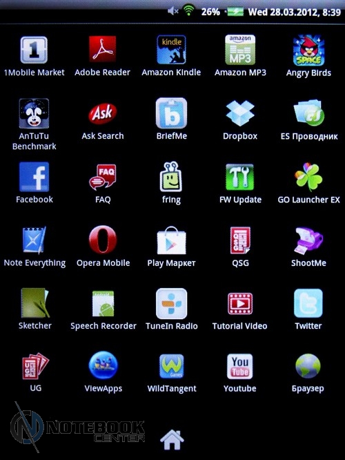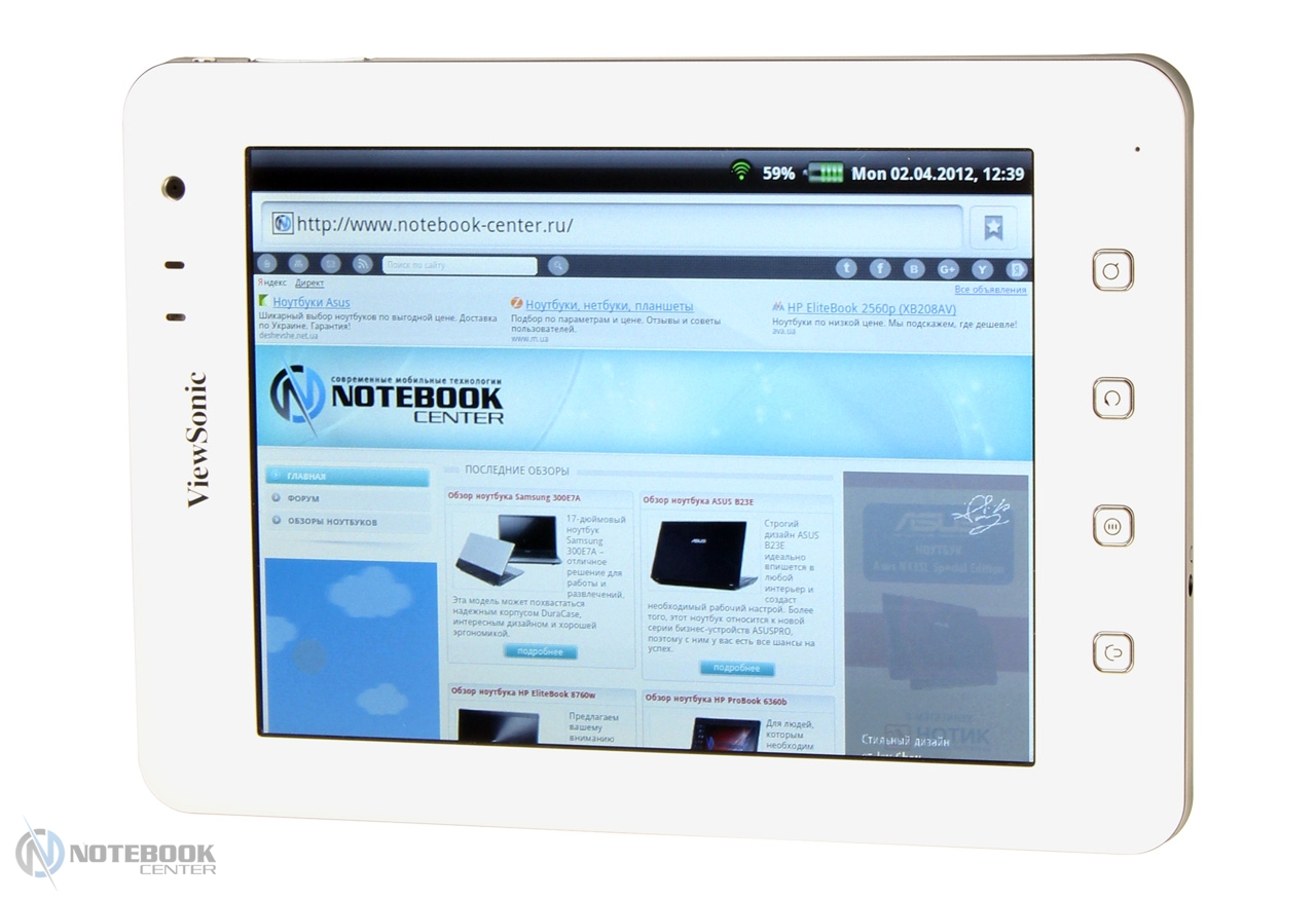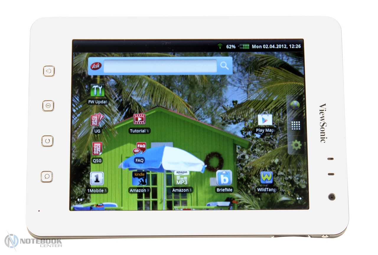 Комплект поставкиК нам на тестирование пришел тестовый образец, поэтому судить о комплекте поставки мы не можем. Правда, на официальном сайте ViewSonic есть информация, что с планшетом будет идти блок питания, инструкция и кабель Mini USB. В принципе, все что нужно, но не лишним был бы чехол. ДизайнВнешне планшет сильно напоминает электронную книгу или цифровую фоторамку. Такой же небольшой, легкий. Корпус ViewPad 7e изготовлен из матового пластика. Компания ViewSonic издавна гордится качеством сборки своих устройств. В данной модели мы не заметили ни зазоров, ни люфта деталей. Единственное, что задняя крышка планшета немного поскрипывала. ![]() Модель выполнена в одном цвете «белый жемчуг». Впрочем, такая расцветка видна только внизу и вверху. А вот боковые панели белые с черными изогнутыми вставками. Они оригинально утолщаются от краев к центру. Такое оформление смотрится достаточно элегантно и стильно. Отметим, что планшет имеет компактные размеры 137х192х12 мм и небольшой вес 450 граммов. Рассмотрим подробнее, как планшет выглядит внешне. Область снаружи – это непосредственно сам дисплей. По периметру экрана располагается белая рамка. Она имеет закругленные края, гладкую, но не скользкую поверхность. ![]() Здесь в верхней части производители разместили надпись ViewSonic, светодиодный индикатор, отображающий состояние зарядки, и датчик света. Соответственно, яркость дисплея настраивается автоматически в зависимости от освещенности. Внизу на рамке предусмотрены четыре функциональные клавиши. ![]() Задняя крышка имеет две почти не отличимые по ощущениям зоны. Основная это гладкий и мягкий пластик, вторая – тонкая черная вставка c покрытием софт-тач. Благодаря этому, планшет очень удобно держать в руках, вряд ли он выскользнет. Тут же можно увидеть веб-камеру и динамик, аналогичную надпись ViewSonic и, наконец, краткие сведения о планшете (страна-производитель, потребляемое напряжение и пр.). ![]() Дисплей и звукВ планшете ViewSonic ViewPad 7e установлен 7-дюймовый жидкокристаллический дисплей SVGA с разрешением 600х800 пикселей. Экран имеет глянцевое покрытие, тем не менее, бликует он умеренно. Правда, без отражений все равно не обойдется. ![]() Отметим, что экран сенсорный, поддерживает технологию мультитач, следовательно, владелец сможет масштабировать изображения и страницы так, чтобы достичь максимального комфорта при просмотре изображений или текста. Добавим, что для удобства можно будет выбирать между альбомной и книжной ориентацией экрана. В этом поможет акселерометр, который определяет положение устройства в пространстве. При чтении книг можно также выбрать оптимальный шрифт и выставить 3D-пролистывание. ![]() Кстати, в планшете есть приложение Amazon Kindle, содержащее огромную коллекцию газет, книг, журналов. Целиком достаточно, чтобы найти себе информацию по душе. Нельзя не обратить внимания на то, что дисплей резистивный и поддерживает функцию RiteTouch. Следовательно, можно писать по поверхности экрана не только цифровым пером, но и вообще любым предметом, например, простым карандашом. Это очень удобно. Впрочем, если вам придется воспользоваться планшетом, находясь на улице в холодное время года, то на касание пальцами в перчатках дисплей тоже отлично отреагирует. Кстати, все заметки, выполненные рукописным текстом, вы сможете сделать в программе Sketcher. И, наконец, чтобы ка
