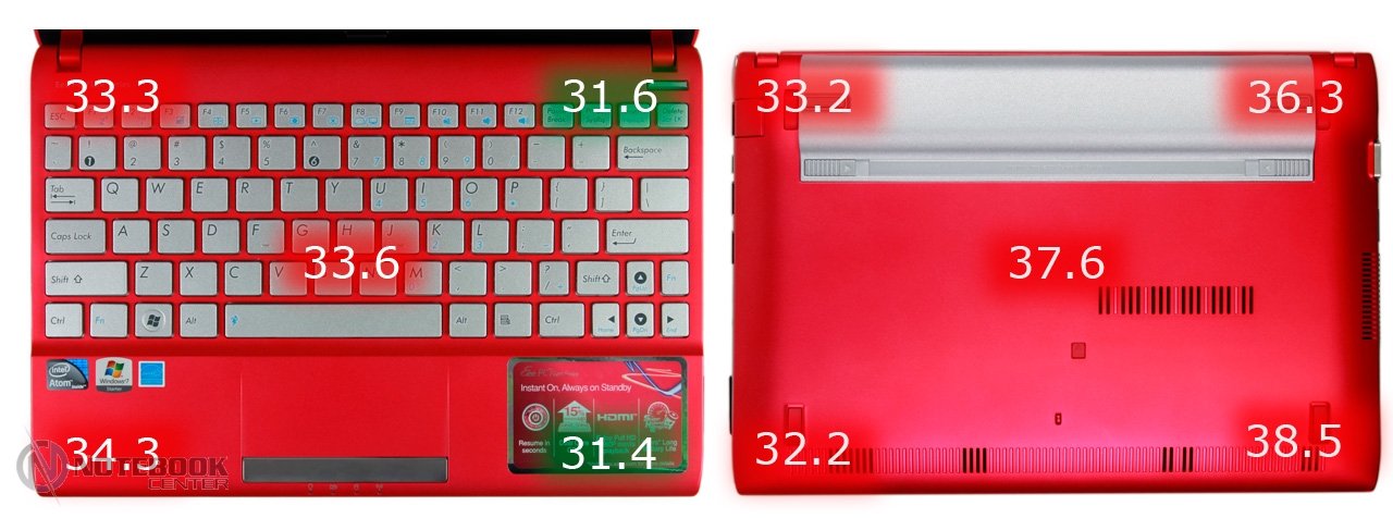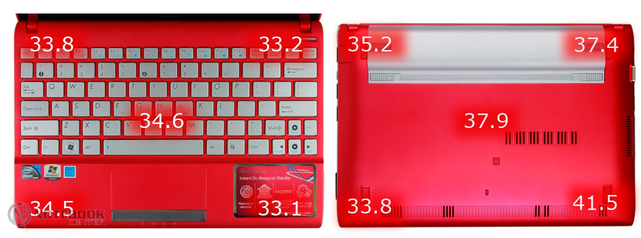ДизайнСовсем недавно у нас на тестировании был нетбук ASUS Eee PC X101CH, немногим ранее HP Mini 210. На первый взгляд ASUS Eee PC 1025 CE очень похож на эти модели. На самом деле эти устройства отличаются, хотя и не так кардинально. Здесь едва заметно отличие в цвете и, если брать в пример тот же PC X101CH, отсутствие текстуры. Посмотрим, чем же привлекательна модель Eee PC 1025CE? Сразу начнем с того, что пользователям предлагается три расцветки: синий (Mysterious Blue), розовый (Addict Pink) и фиолетовый (Plucky Purple), в отличие от модели 1025С, где есть и классические цвета. Поэтому ASUS Eee PC 1025 CE придется по душе, вероятнее всего, молодым девушкам, нежели парням. Рассмотрев корпус нетбука снаружи, мы заметили, что он сделан из пластика. Хотя, некоторые детали издали выглядят как металлические. Например, боковые торцы. Крышка устройства слегка прогибается, днище, напротив, более жесткое. Кстати, нижняя панель, как и верхняя практически ничем не украшена. Разве что на крышке расположен логотип ASUS. ![]() Днище нетбука имеет такое же, как и снаружи, матовое покрытие. Нижняя панель сплошная, на ней не видно ни одного винтика, ни одного отсека, чтобы подобраться к внутренним компонентам. На днище расположился лишь 6-сегментный аккумулятор, выступающий за пределы корпуса, и две решетки. За одной из них, более длинной, можно увидеть моно динамик. Отметим, что производители не забыли и о резиновых ножках, на которых будет стоять нетбук. Они располагаются по периметру и имеют закругленную кверху (выпуклую) форму. ![]() Кстати, определяясь с формой корпуса ASUS Eee PC 1025CE, дизайнеры немного отошли от традиционного исполнения. В частности, обтекаемые панели со всех сторон «стремятся» друг к другу. Ближе к краям расстояние, отделяющее верхнюю и нижнюю части корпуса, становится совсем небольшим. В общем, благодаря такому решению нетбук кажется более тонким, чем есть на самом деле. Хотя, конечно же, его габариты и так не слишком велики – 262х179х21-38 мм. Заметим, что на официальном сайте ASUS указана толщина 34 мм, поэтому, скорее всего, расхождения в замерах являются следствием установки выступающей 6-секционной батареи. И еще один нюанс – «складывающийся» разъем сетевого контроллера. Несомненно, это своеобразный «вклад» в уменьшение толщины корпуса. ![]() Достаточно интересно выполнен интерьер. Дизайнеры здесь предпочли использовать сразу три цвета. Основной, конечно же, розовый. На его фоне отлично смотрятся кнопки клавиатуры стального цвета и черная рамка вокруг дисплея. Хотя, наверное, мог бы быть уместен такой же серый цвет и на рамке. Кстати, окантовка вокруг дисплея достаточно широкая, к тому же она визуально похожа на шлифованный металл. Рамка в верхней части имеет скошенные углы. ![]() Что касается использования глянца и матовых поверхностей, то здесь предпочтение явно отдано последним. Во всяком случае, на рабочей площадке зеркальная только клавиша под тачпадом, а снаружи – это правый и левый торец, логотип. Кстати, все эти детали хромированные, поэтому нетбук смотрится очень эффектно. Все остальные поверхности матовые, на которых совсем не видны отпечатки пальцев. Интересно, что даже царапины на такой поверхности не так сильно заметны. Так что модель не просто модная, но и довольно практичная. Дисплей и звукНетбук ASUS Eee PC 1025CE оснащается 10.1-дюймовым жидкокристаллическим дисплеем M101NWT2 R3, имеющим разрешение 1024х600 пи