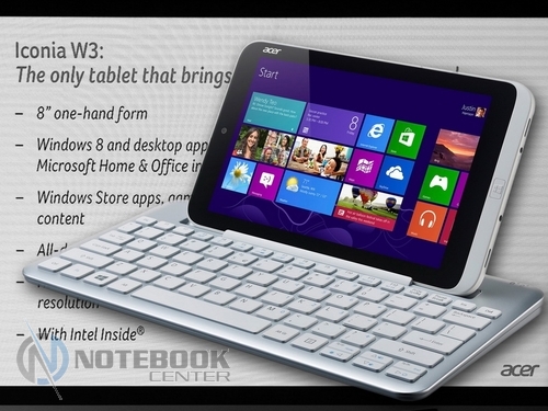 Acer Iconia W3 является первым планшетным ПК на ОС Windows 8 с диагональю экрана менее 10 дюймов. Информация относительно устройства довольно часто мелькала на разных сайтах, но на прошлой неделе производитель официально представил гаджет на выставке Computex, а теперь он стал доступен и для предзаказа.