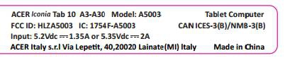 Исходя из спецификаций, указанных на сайте GFXBench, Acer Iconia Tab 10 A3-A30 оснащен процессором Intel Atom Z3735F Bay Trail, 2 ГБ оперативной памяти и 32 ГБ SSD. Помимо этого, в планшете присутствуют 5 Мп основная и 2 Мп фронтальная камеры, 10-дюймовый дисплей с разрешением 1920x1080 пикселей, Wi-Fi, Bluetooth, GPS и NFC.