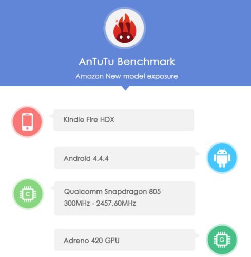 Оказывается, первым планшетом на базе процессора Snapdragon 805 станет представитель от Amazon или лучше сказать обновленная версия уже существующего гаджета. Утечка данных с AnTuTu демонстрирует результаты тестирований Amazon Kindle Fire HDX 8.9 с Snapdragon 805 в роли центрального процессора.