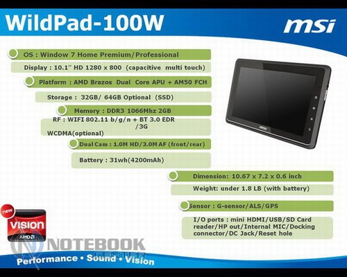 Планшетный компьютер MSI WindPad 110W, основанный на AMD Fusion, уже доступен для предварительного заказа на ExcaliberPC.