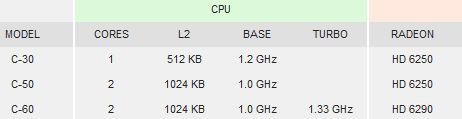 - AMD C-60 будет иметь интегрированный графический контроллер Radeon HD 6290 вместо Radeon HD 6250.