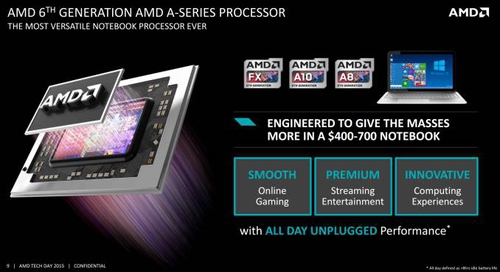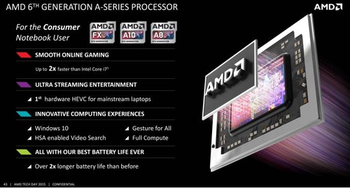 Большинство новых процессоров AMD 15 ваттные, но в более дорогих сериях A10 и FX также появятся и модели с энергопотреблением в 35 ватт, что позволит производителя ноутбуков предложить пользователям варианты с большей производительностью, пожертвовав при этом временем автономной работы.